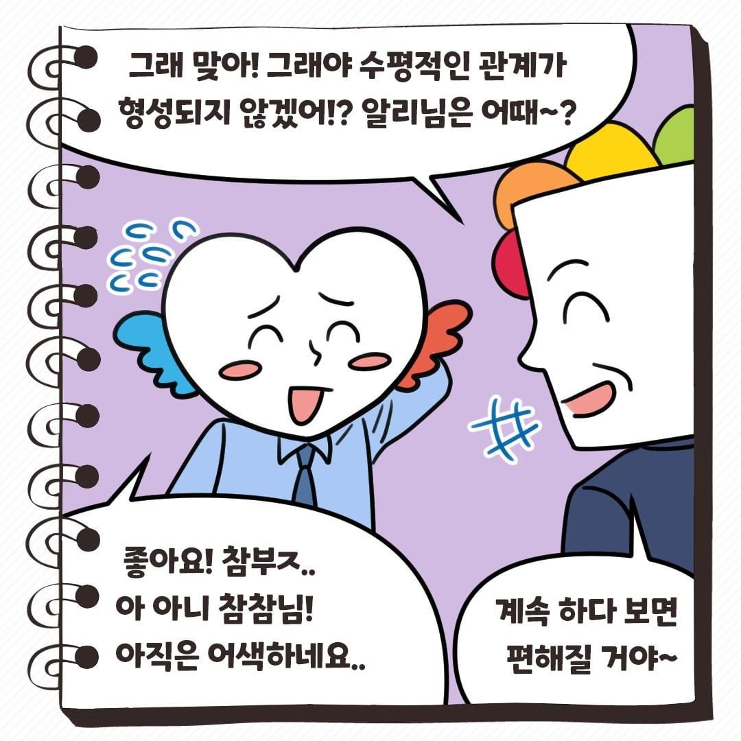 그래 맞아! 그래야 수평적인 관계가 형성되지 않겠어!? 알리님은 어때~?