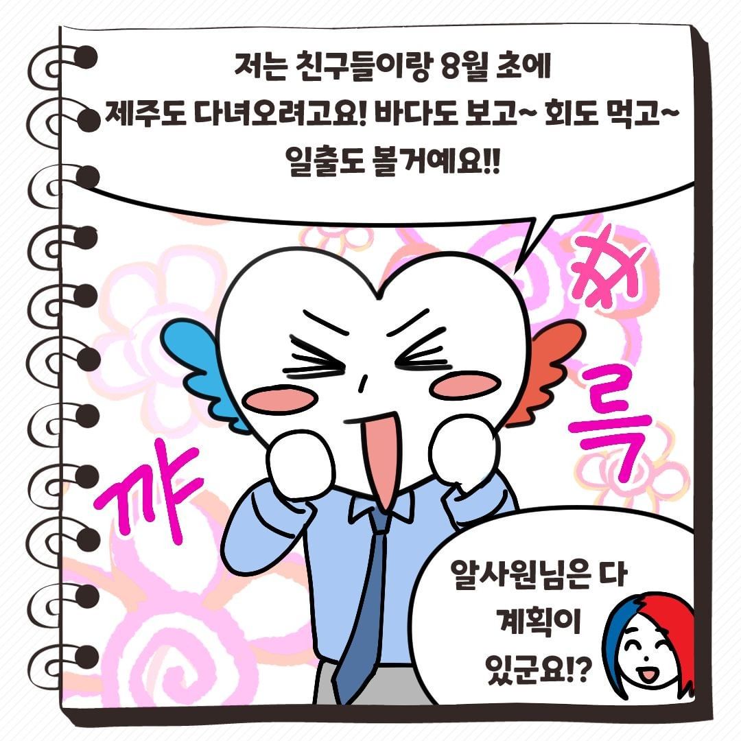 저는 친구들이랑 8월 초에 제주도 다녀오려고요! 바다도 보고~ 회도 먹고~ 일출도 볼거예요!!