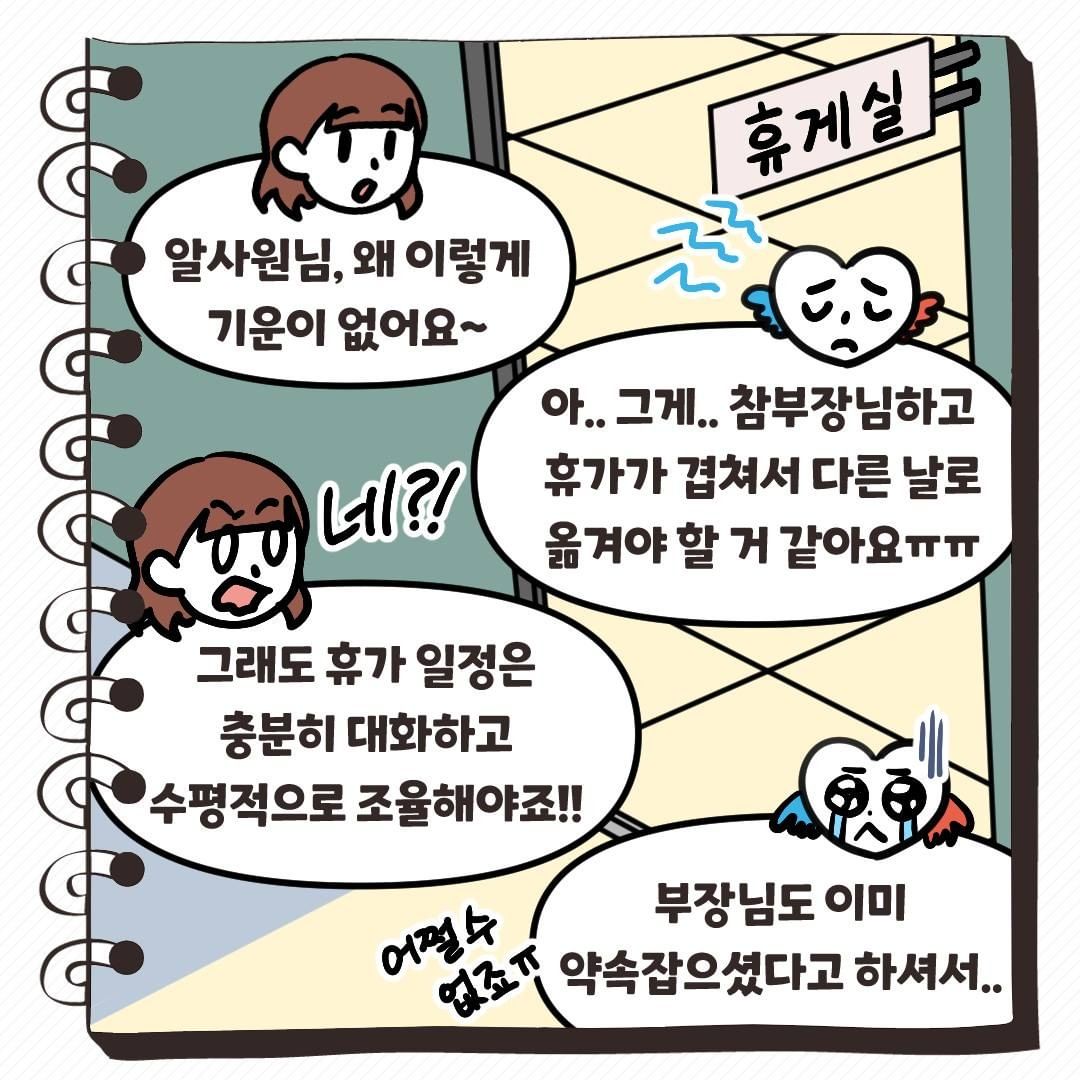 그래도 휴가 일정은 충분히 대화하고 수평적으로 조율해야죠!!