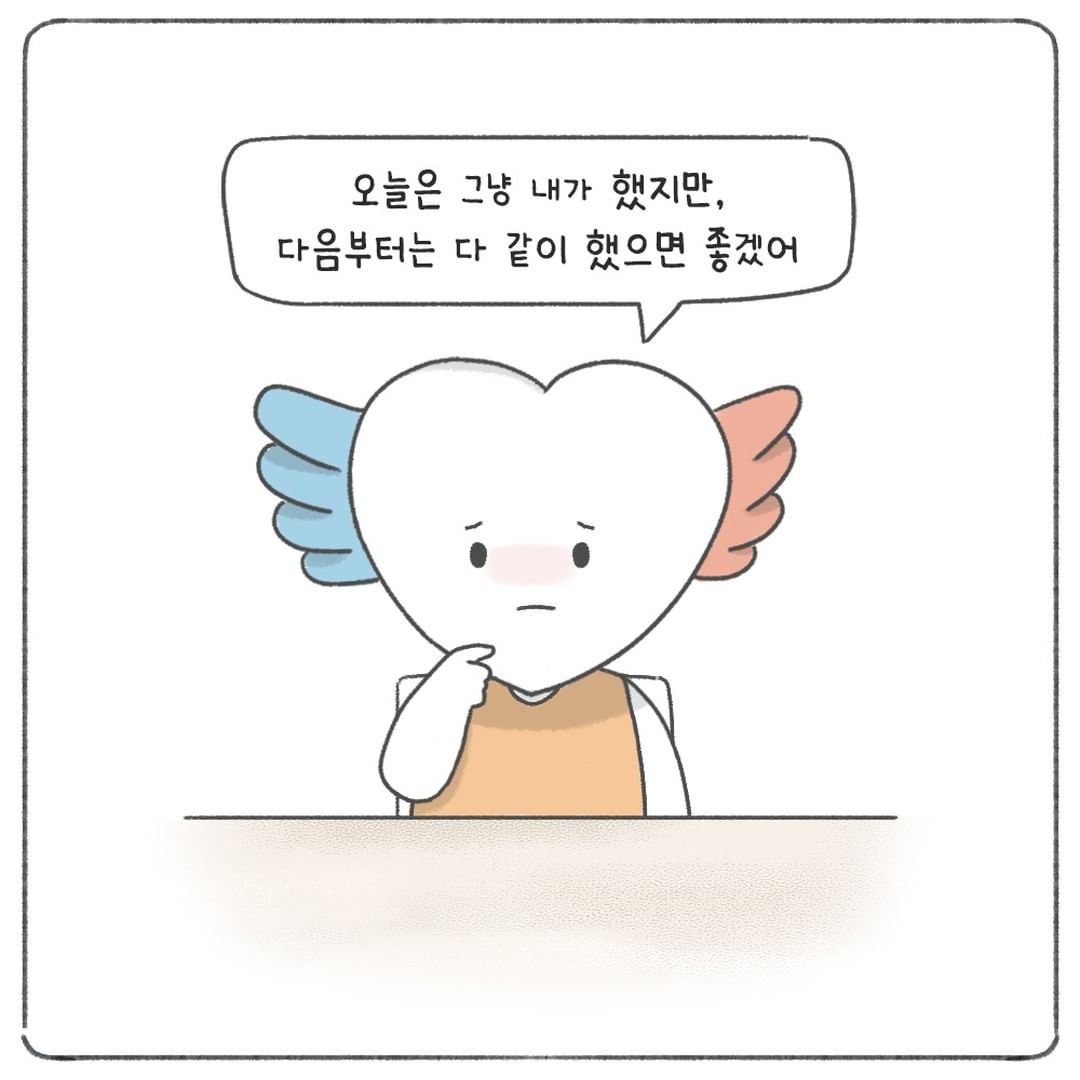 오늘은 그냥 내가 했지만, 다음부터는 다 같이 했으면 좋겠어