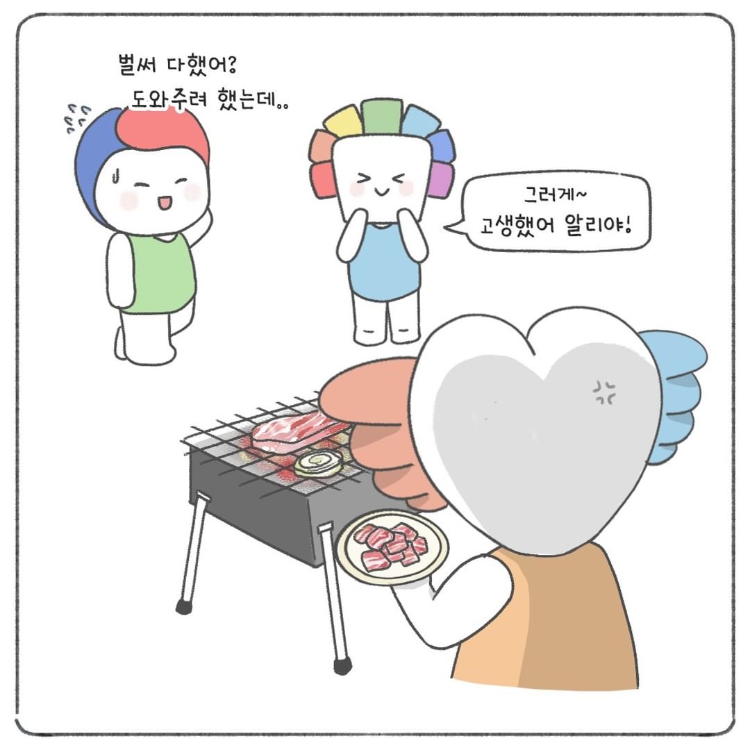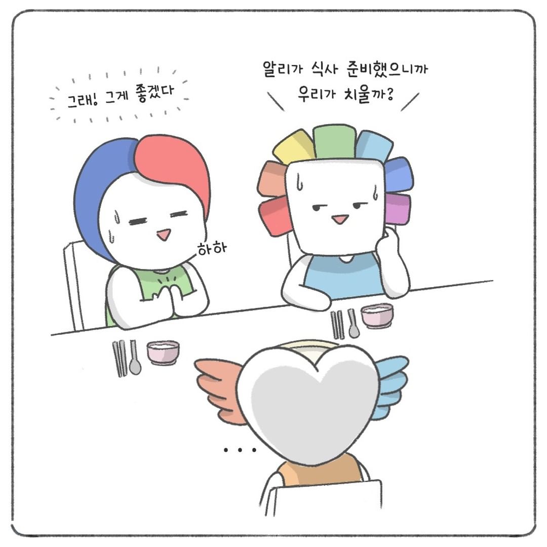 알리가 식사 준비했으니까 우리가 치울까?