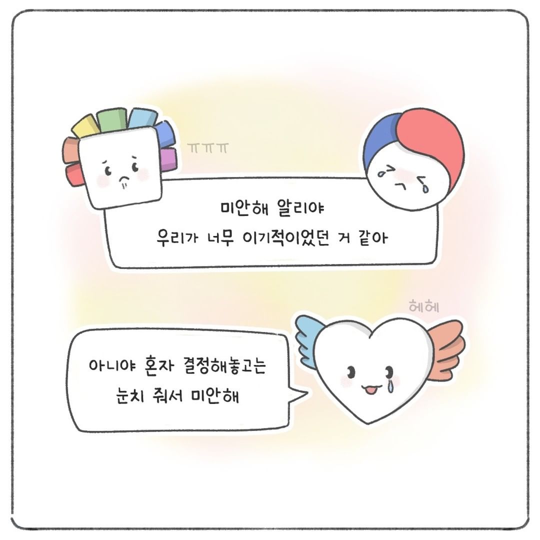아니야 혼자 결정해놓고는 눈치 줘서 미안해 헤헤