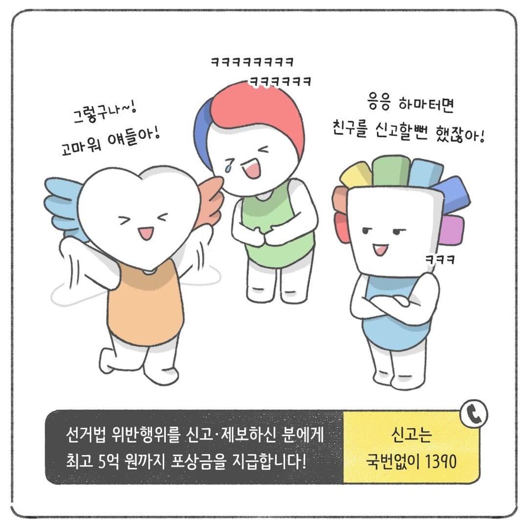 선거법 위반행위를 신고·제보하신 분에게 최고 5억 원까지 포상금을 지급합니다!