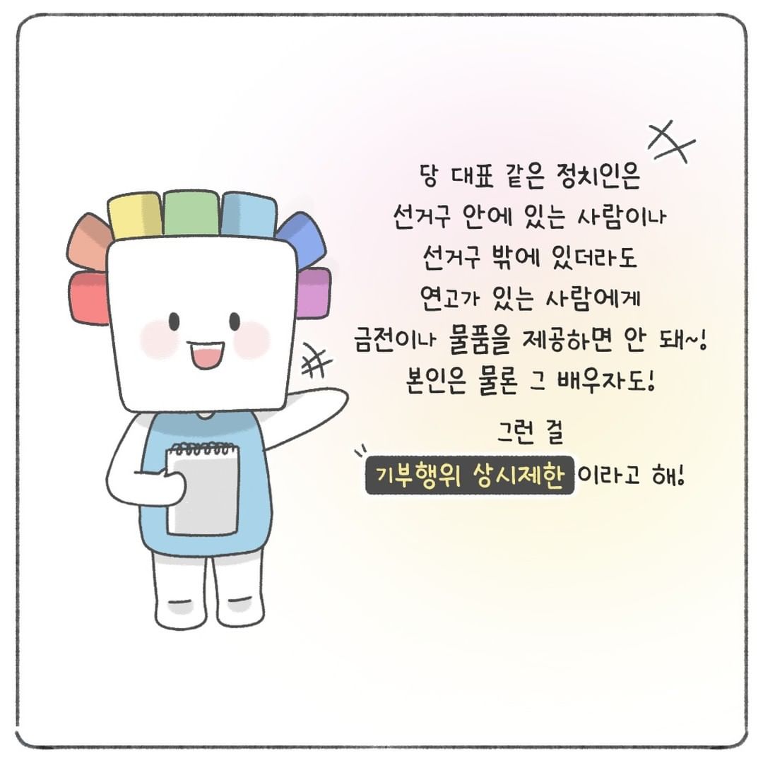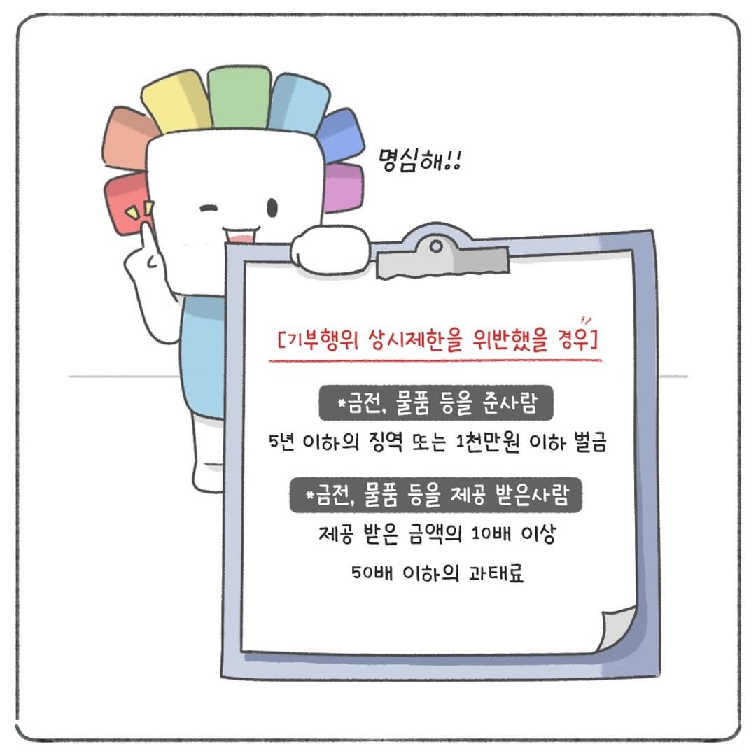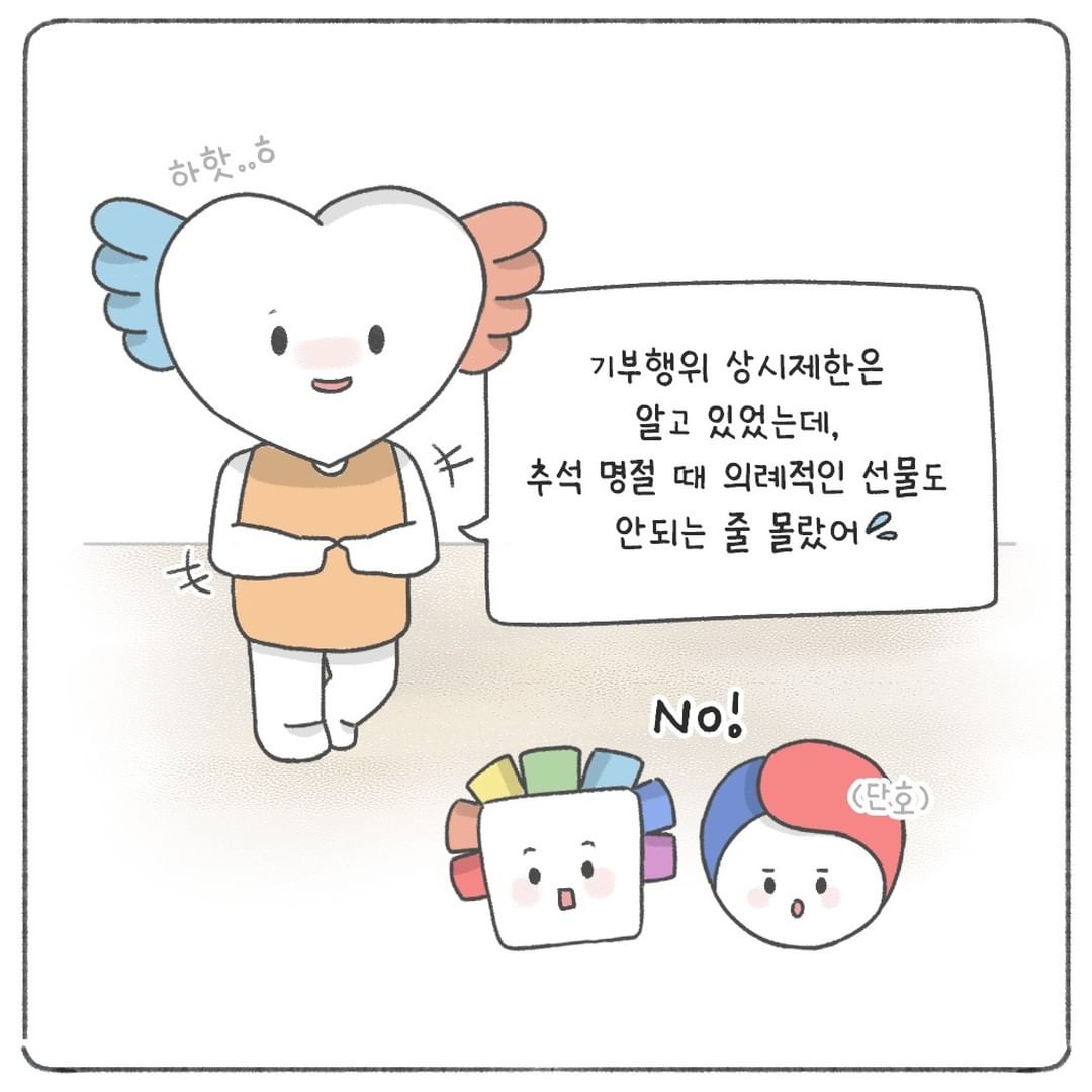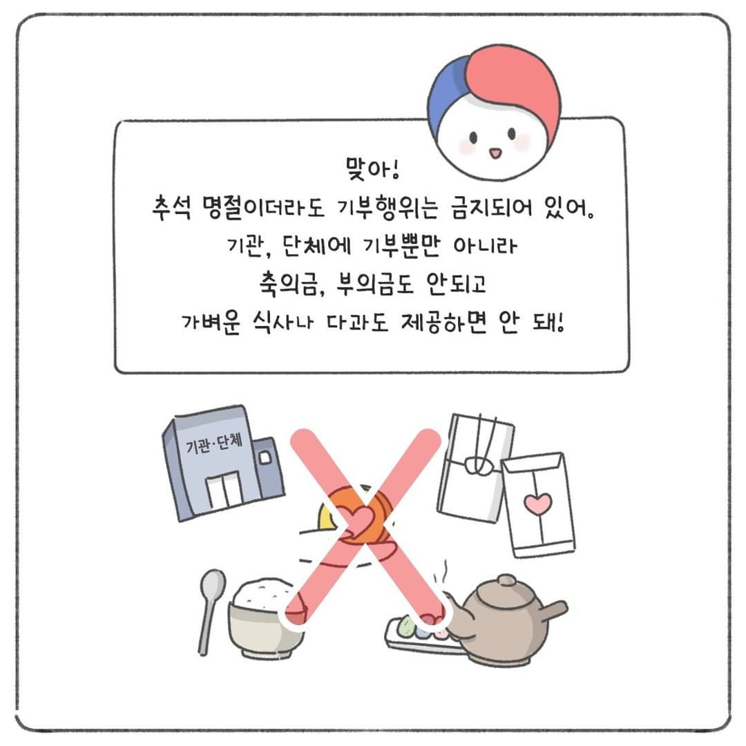 맞아! 추석 명절이더라도 기부행위는 금지되어 있어.