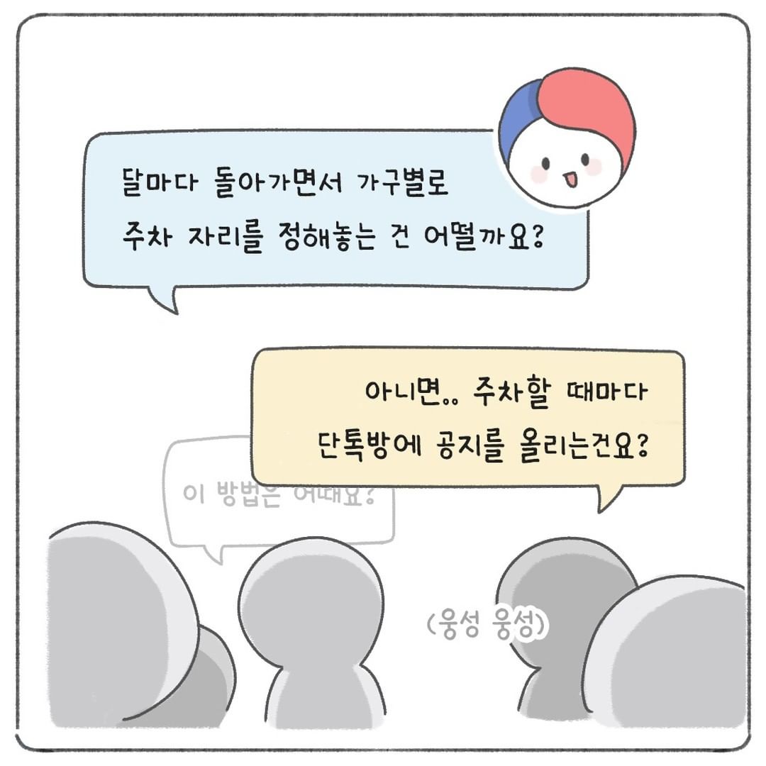 달마다 돌아가면서 가구별로 주차 자리를 정해놓는 건 어떨까요?