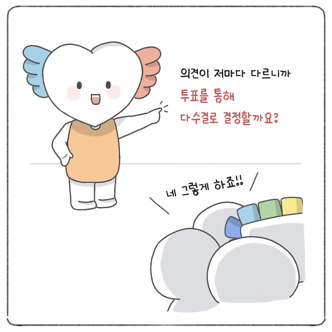 의견이 저마다 다르니까 투표를 통해 다수결로 결정할까요?