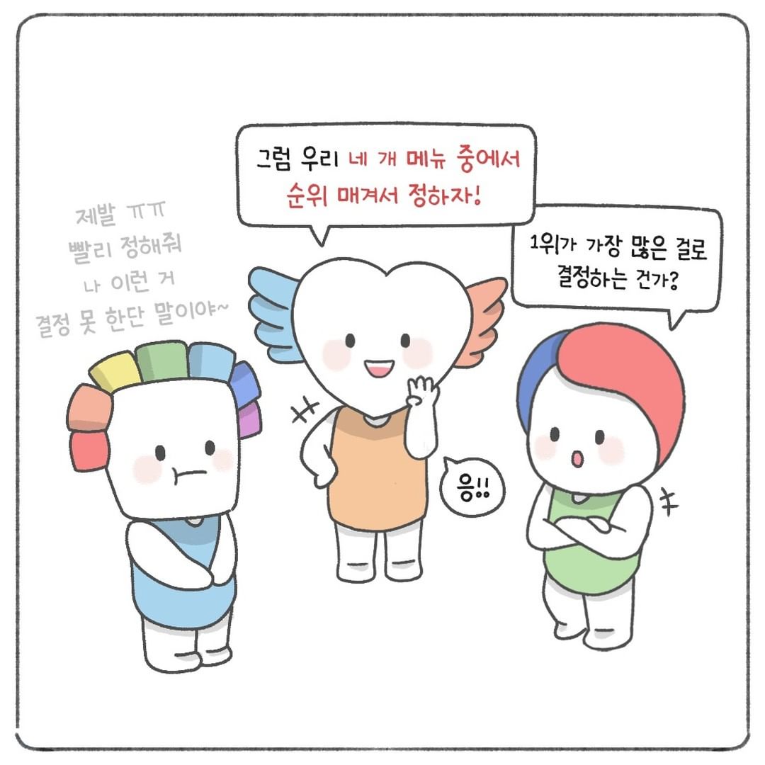 그럼 우리 네 개 메뉴 중에서 순위 매겨서 정하자!