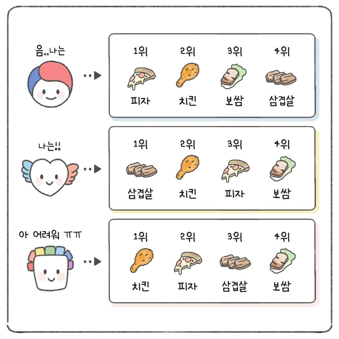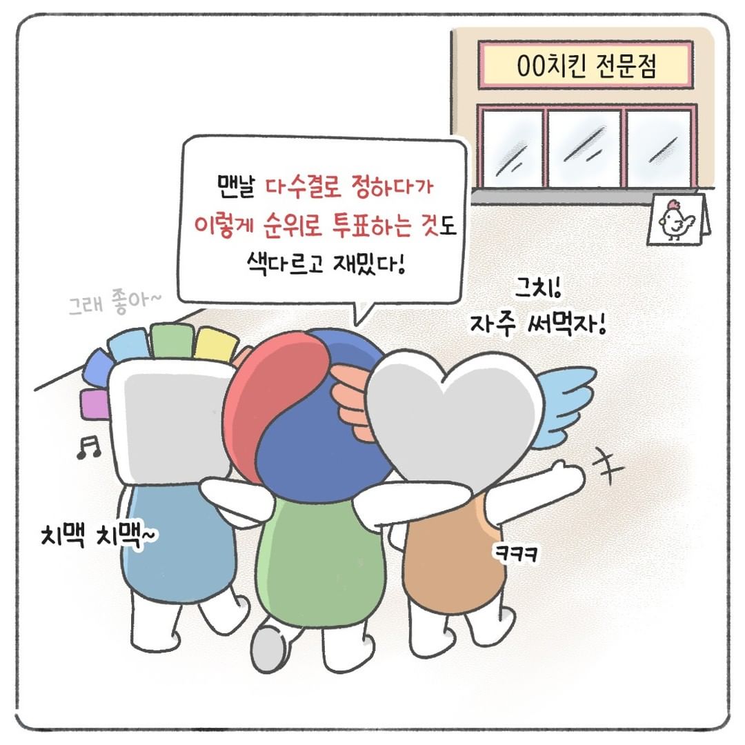 맨날 다수결로 정하다가 이렇게 순위로 투표하는 것도 색다르고 재밌다!