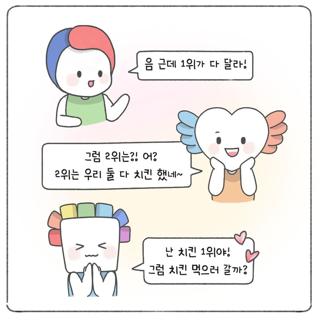 아 어려워 ㅠㅠ 1위 치킨, 2위 피자, 3위 삼겹살, 4위 보쌈