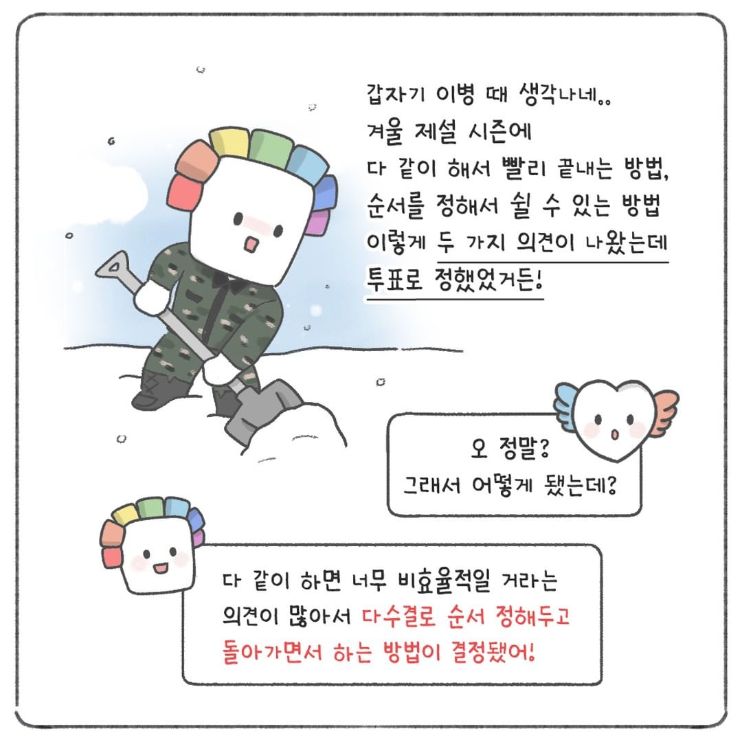겨울 제설 시즌에 다같이 해서 빨리 끝내는 방법, 순서를 정해서 쉴 수 있는 방법