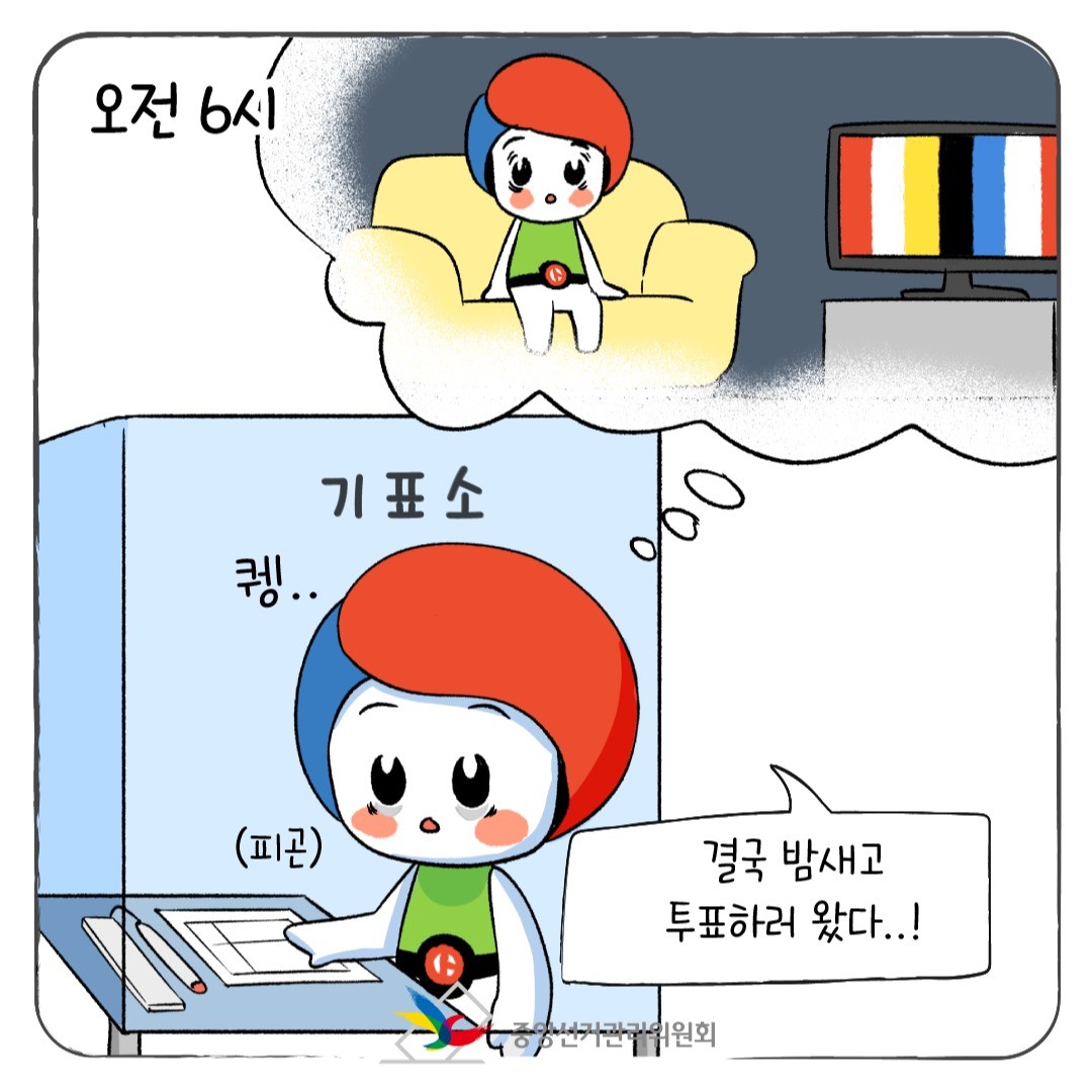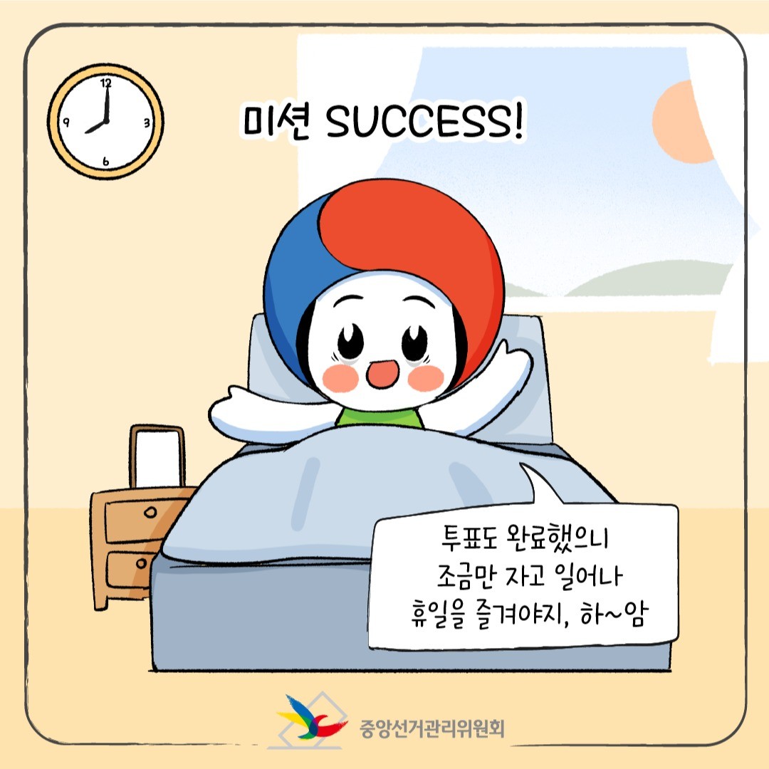 투표도 완료했으니 조금만 자고 일어나 휴일을 즐겨야지, 하~암