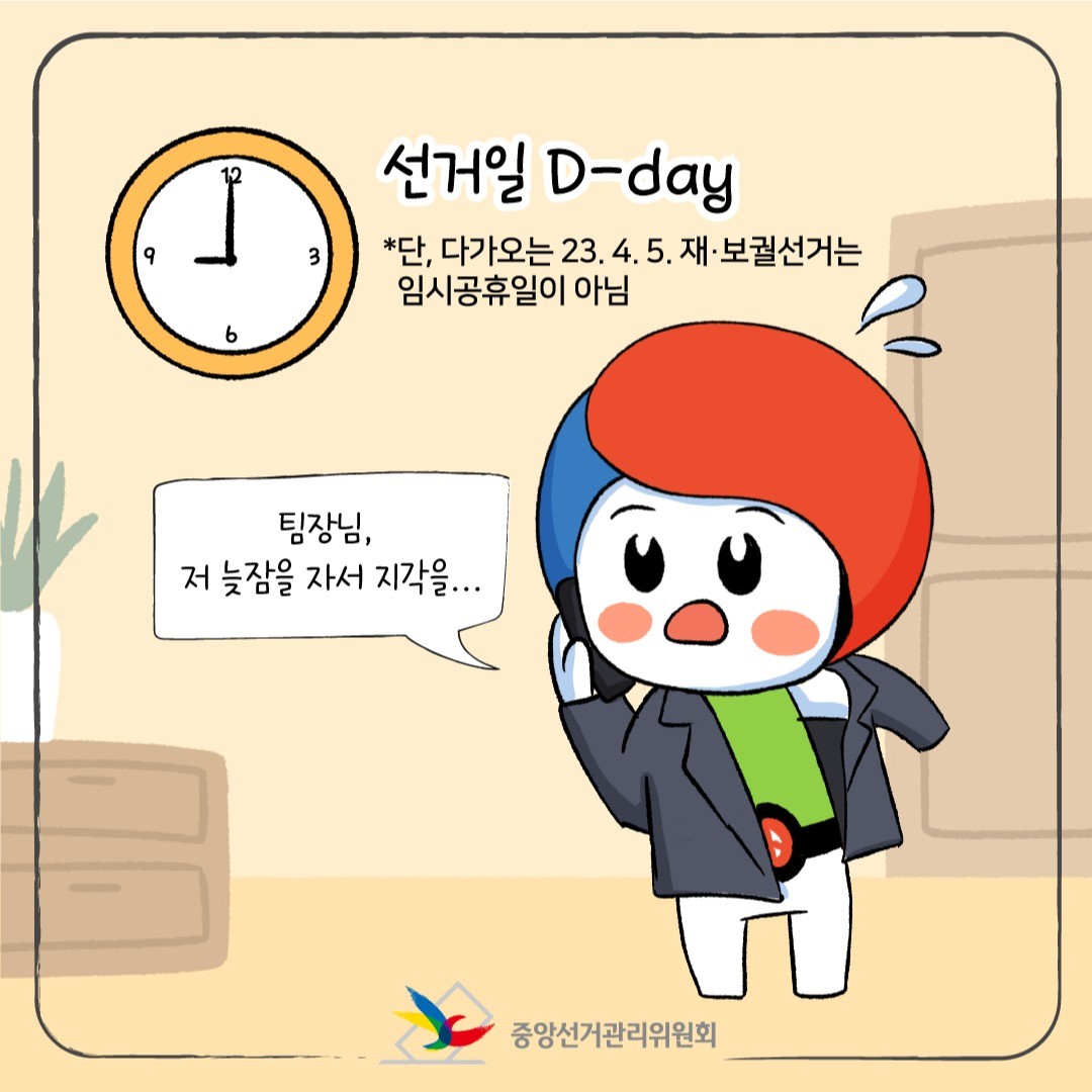 *단, 다가오는 23. 4. 5. 재보궐선거는 임시공휴일이 아님