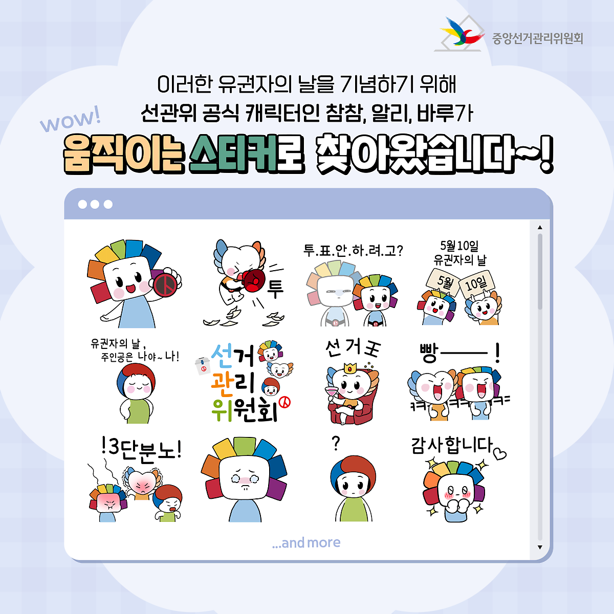 선관위 공식 캐릭터인 참참, 알리, 바루가