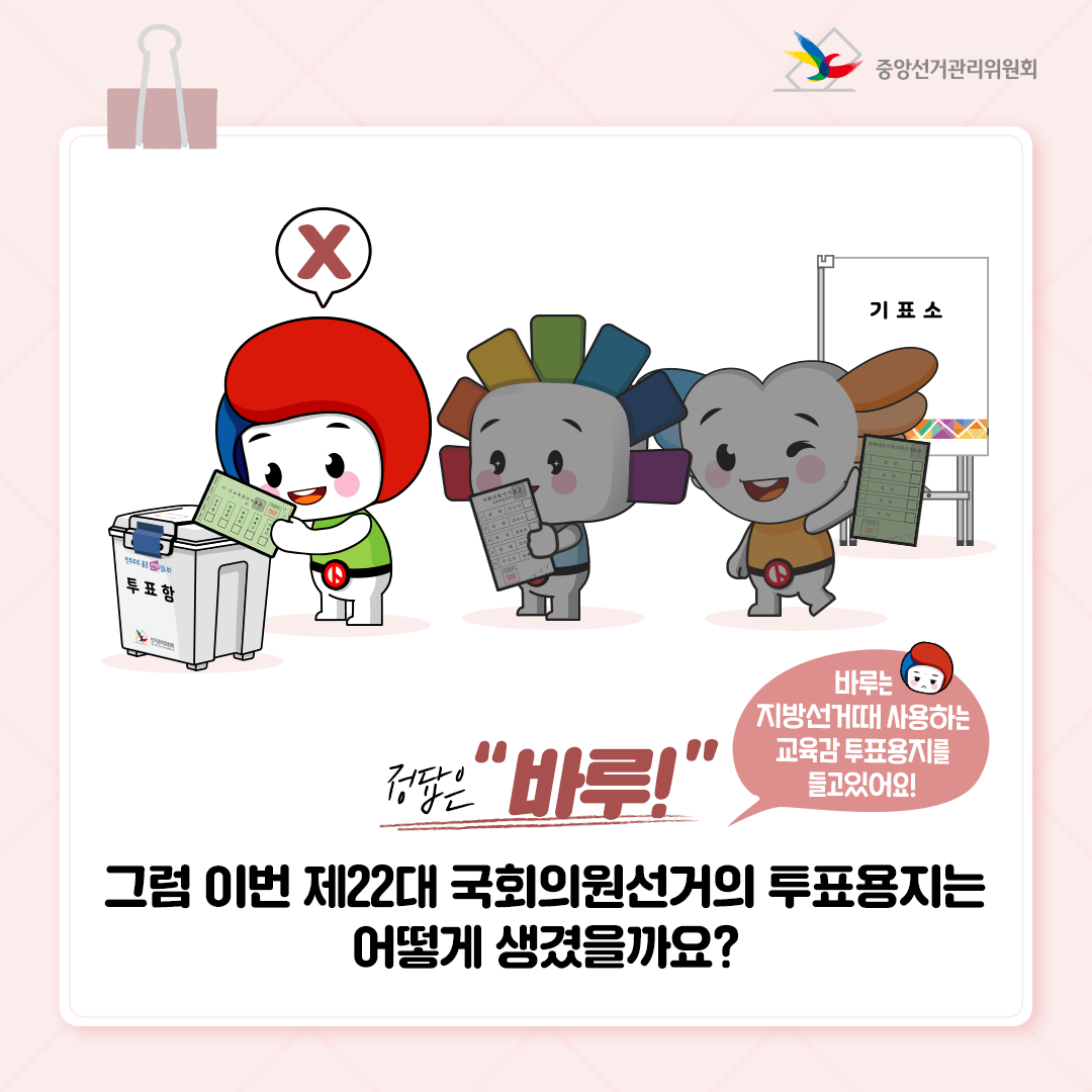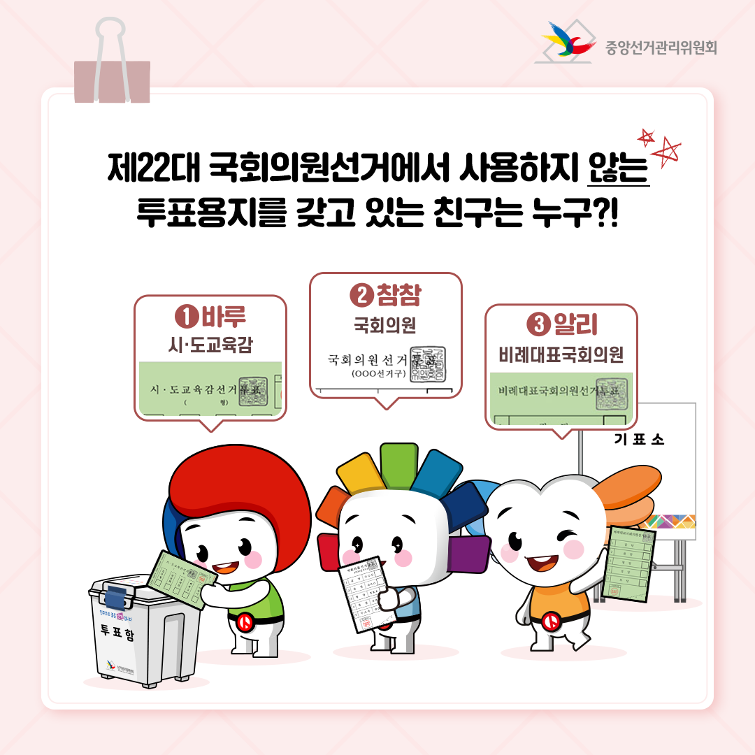 제22대 국회의원선거에서 사용하지 않는 투표용지를 갖고 있는 친구는 누구?!