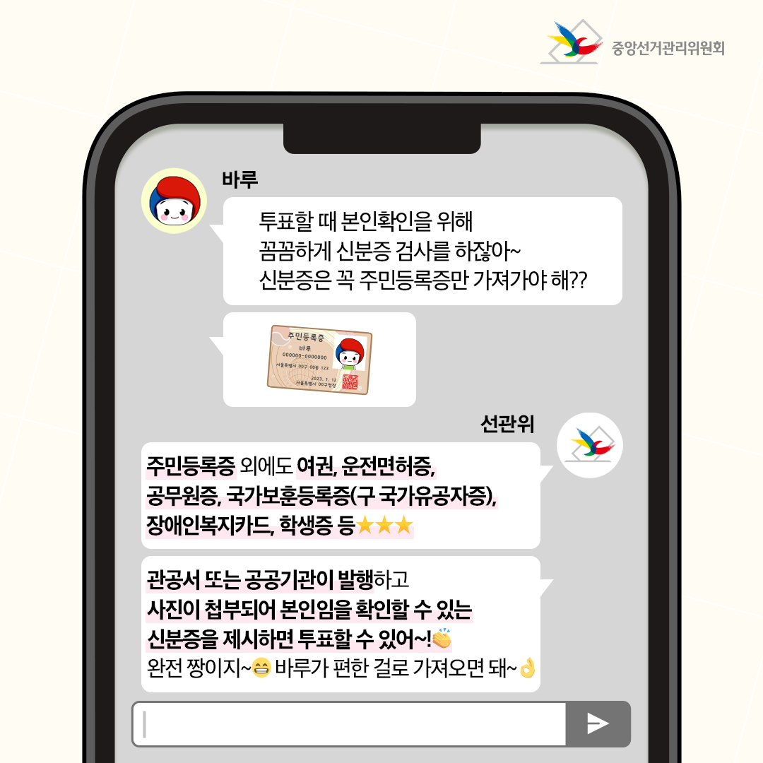 투표할 때 본인확인을 위해 꼼꼼하게 신분증 검사를 하잖아~
