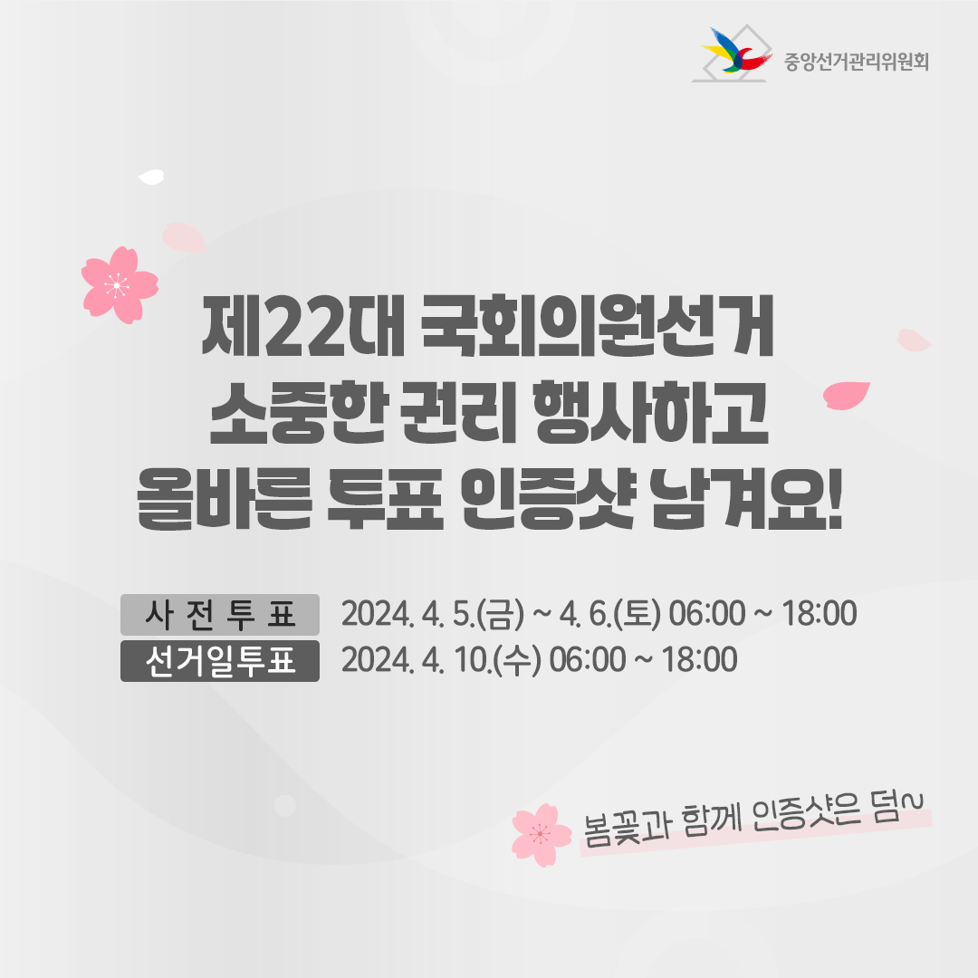선거일 투표 | 2024. 4. 10.(수) 06:00 ~ 18:00