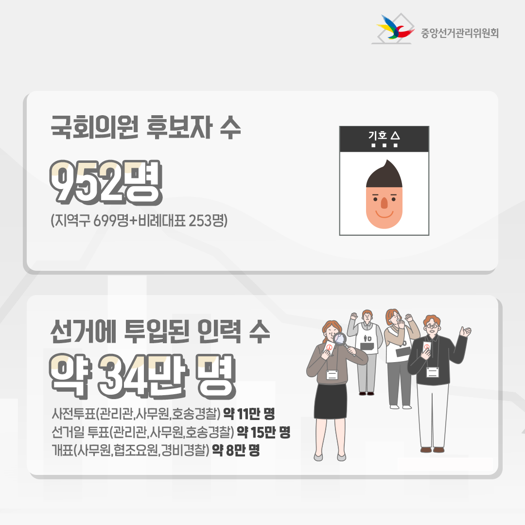 개표(사무원, 협조요원, 경비경찰) 약 8만 명