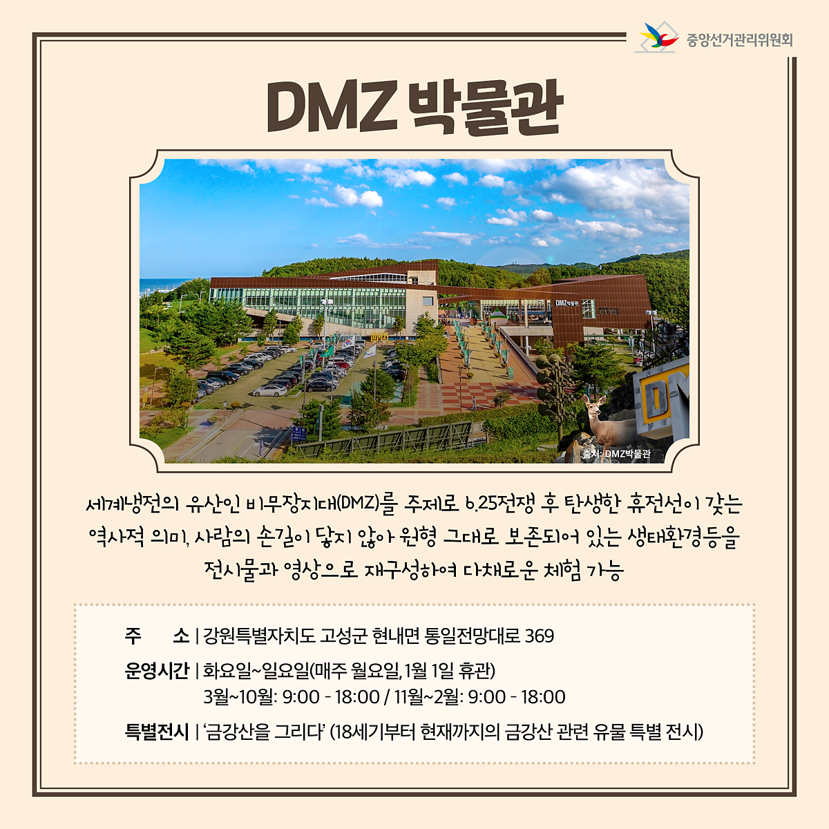 세상에 단 하나뿐인 비무장지대, DMZ를 기억하고 기록하기 위해 건립된 박물관입니다.
