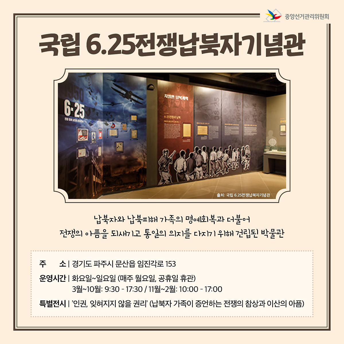 납북자와 납북피해 가족의 명예 회복과 더불어 전쟁의 아픔을 되새기기 위해 건립된 박물관입니다.
