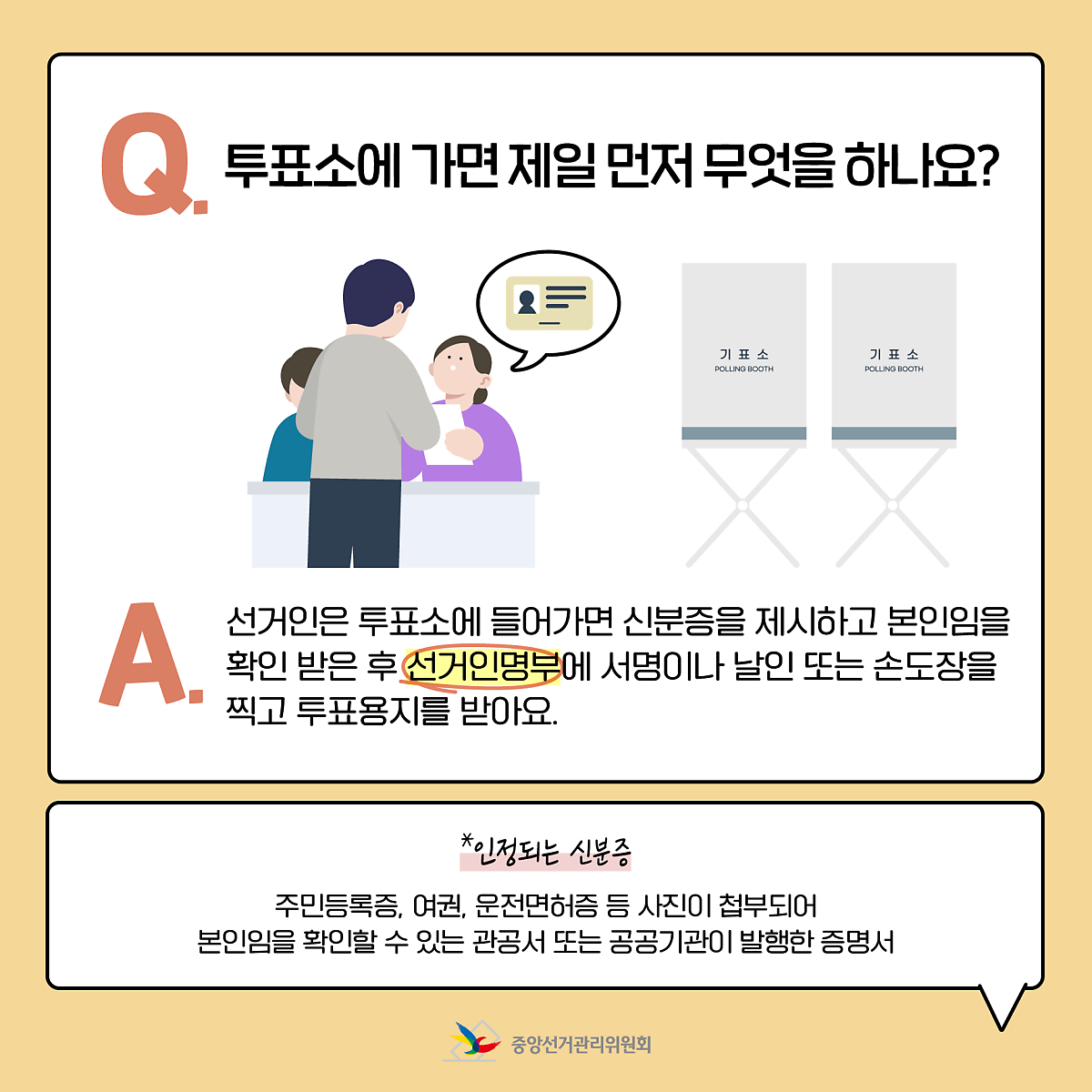 Q. 투표소에 가면 제일 먼저 무엇을 하나요?