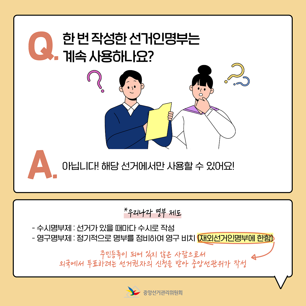 Q. 한 번 작성한 선거인명부는 계속 사용하나요?