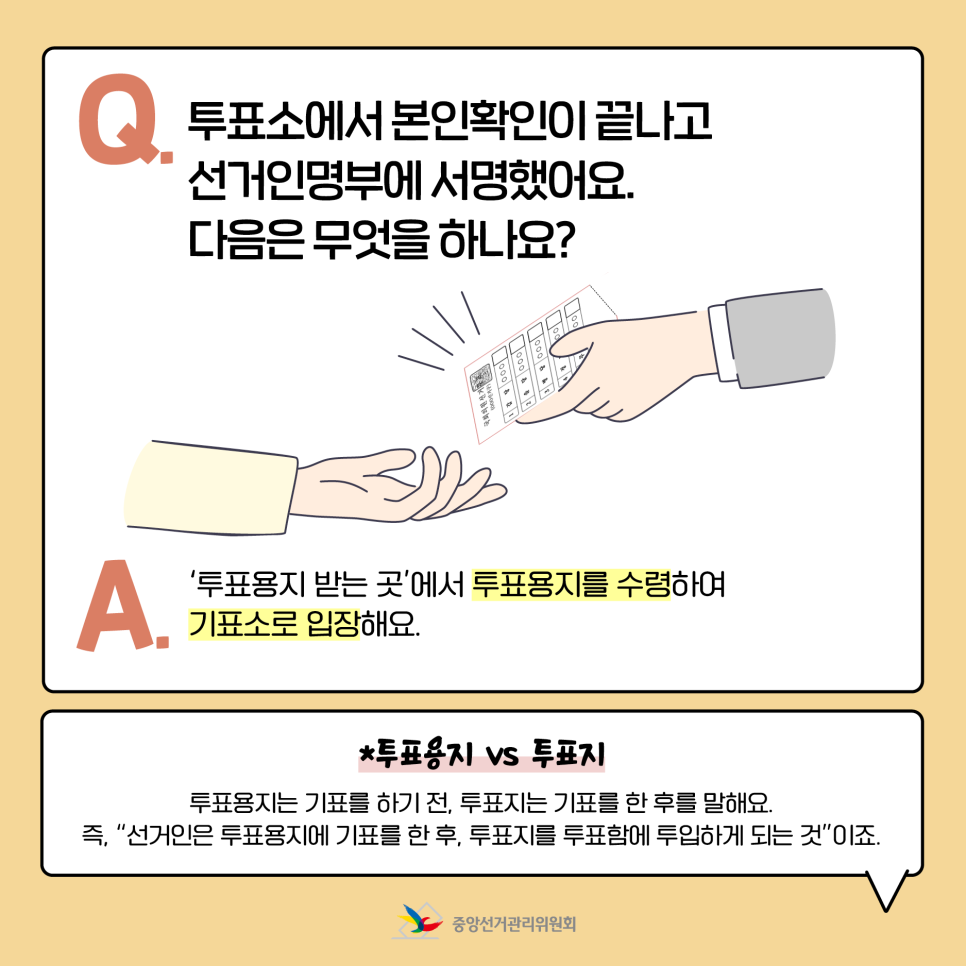 Q. 투표소에서 본인확인이 끝나고 선거인명부에 서명했어요.