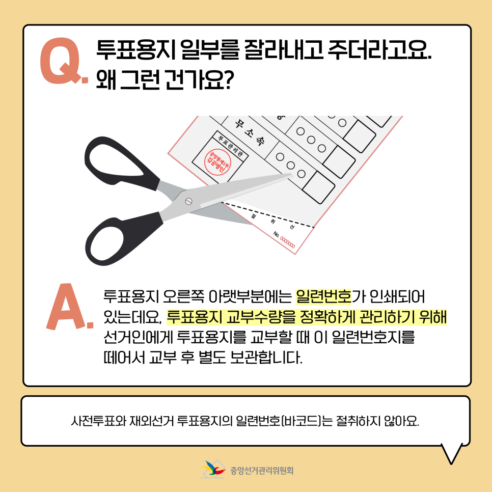 Q. 투표용지 일부를 잘라내고 주더라고요. 왜 그런 건가요?