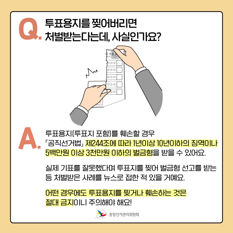 Q. 투표용지를 찢어버리면 처벌받는다는데, 사실인가요?