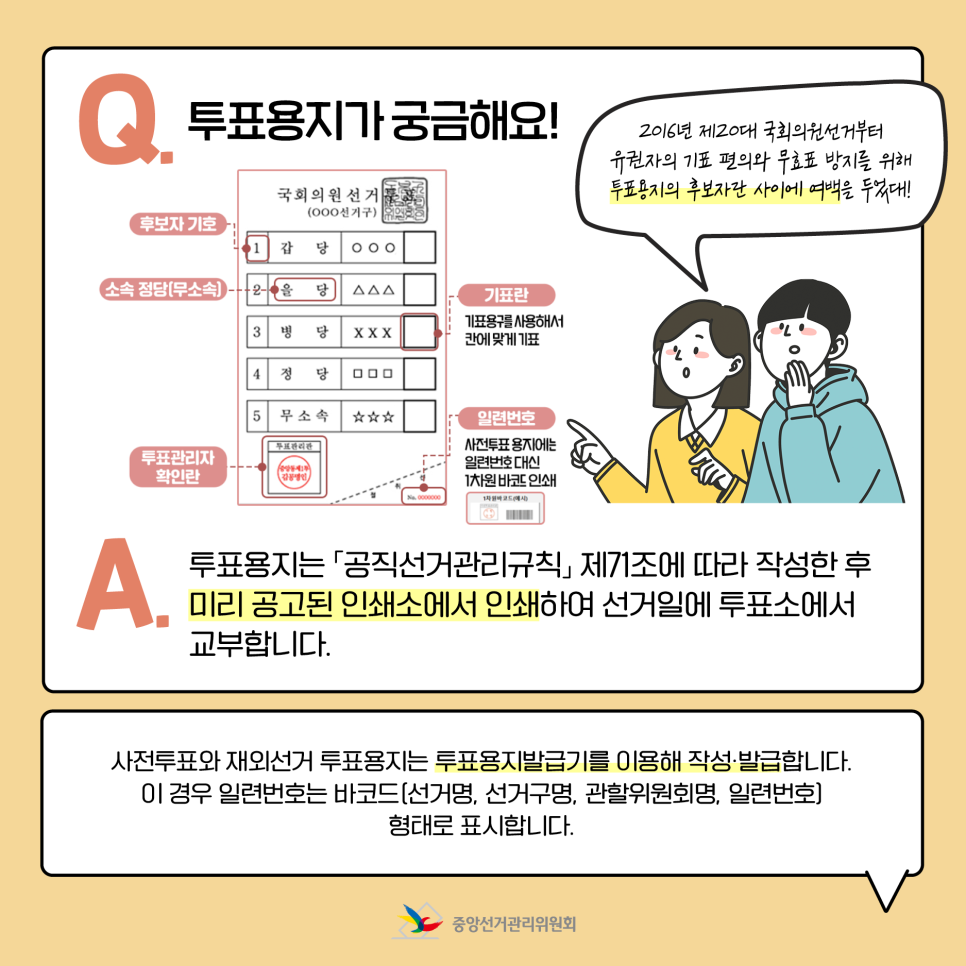 A. 투표용지 오른쪽 아랫부분에는 일련번호가 인쇄되어 있는데요,