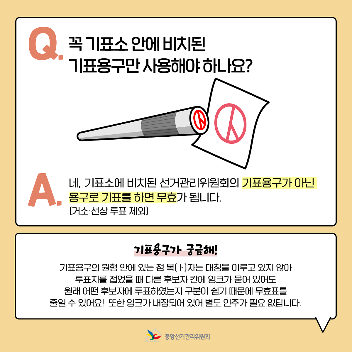 Q. 꼭 기표소 안에 비치된 기표용구만 사용해야 하나요?