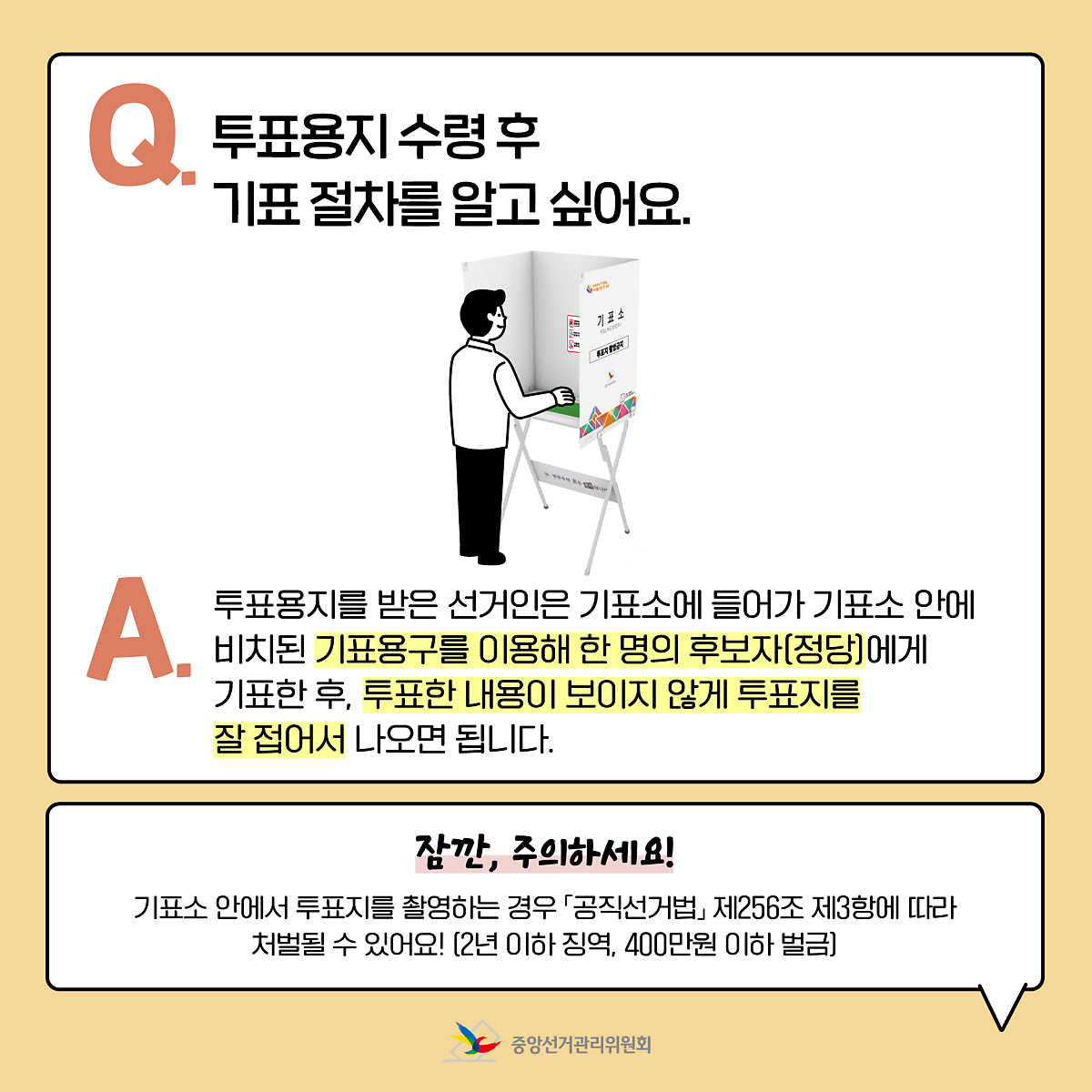 Q. 투표용지 수령 후 기표 절차를 알고 싶어요.