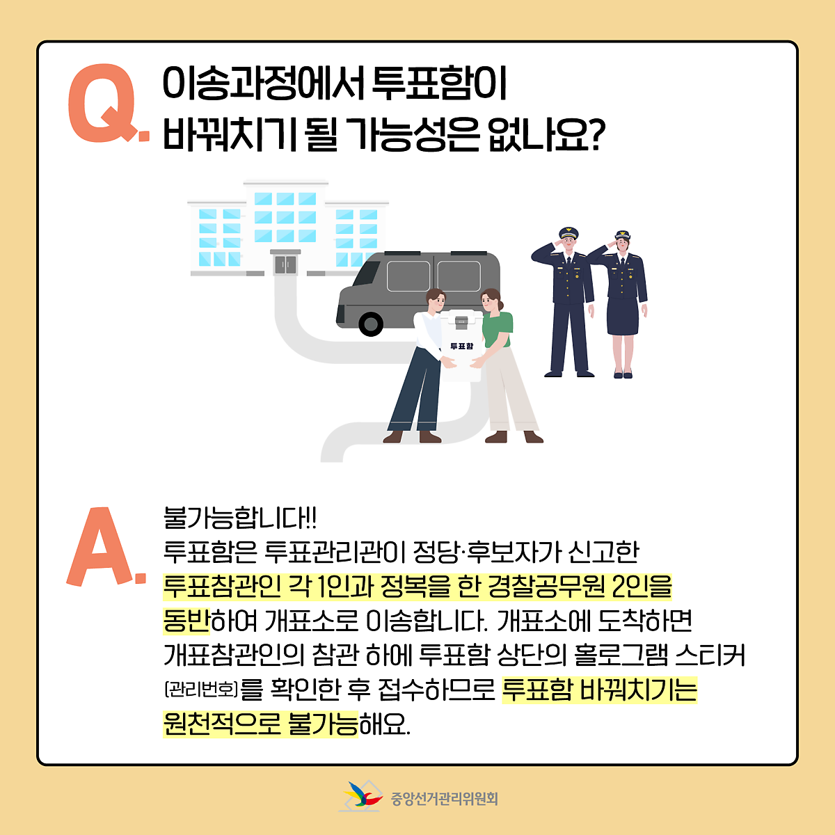 Q. 이송과정에서 투표함이 바꿔치기 될 가능성은 없나요?