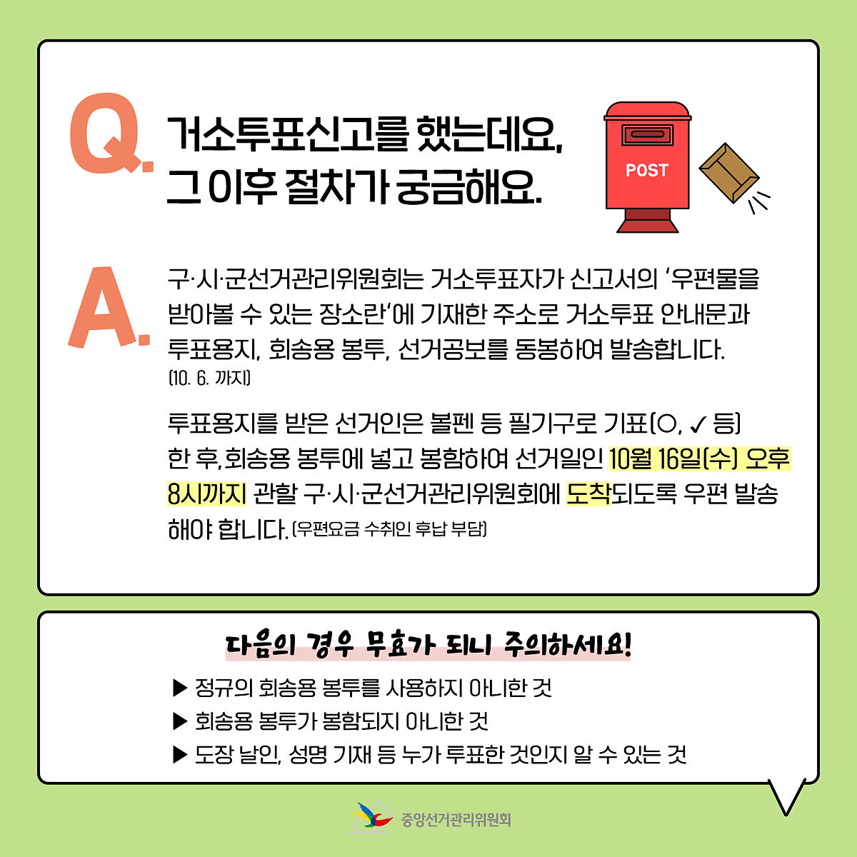 *거소투표: 10. 16.(수) 오후 8시까지 우편 제출