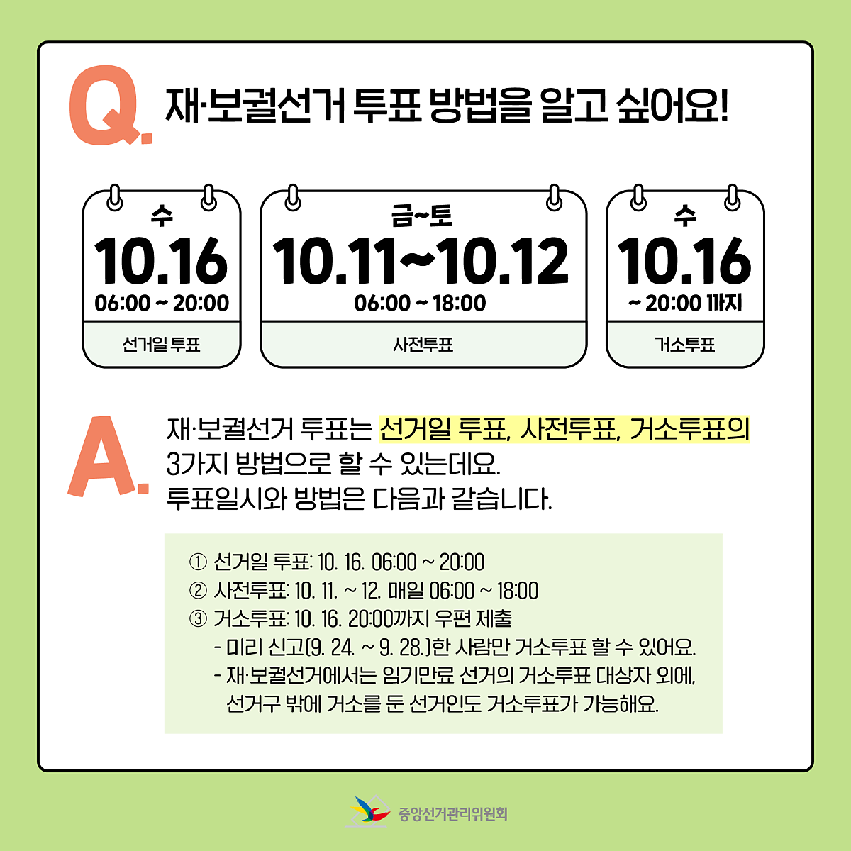 *선거일 투표: 10. 16.(수) | 오전 6시 ~ 오후 8시