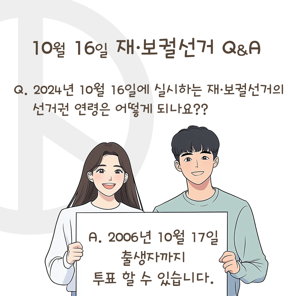 Q. 2024년 10월 16일 실시하는 재보궐선거의 선거권 연령은 어떻게 되나요??