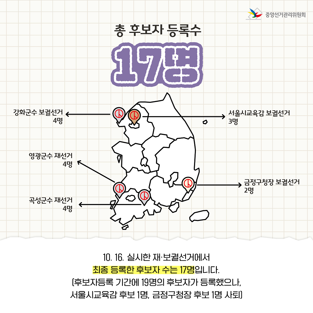 지난 10. 16. 실시한 재·보궐선거에서 최종 등록한 후보자 수는 17명입니다.