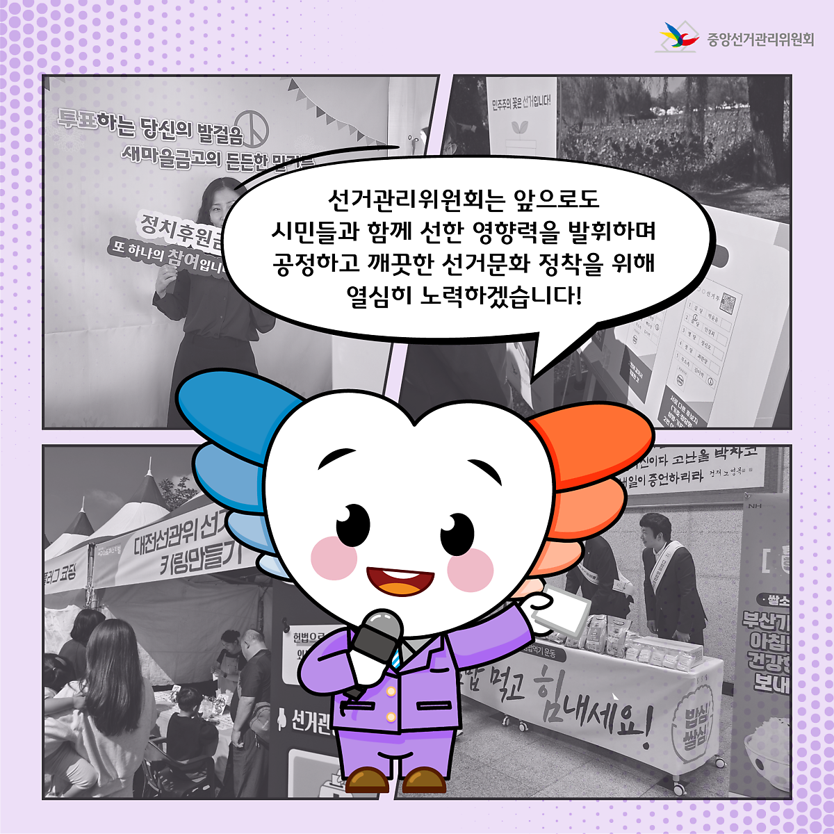 선거관리위원회는 앞으로도 시민들과 함께 선한 영향력을 발휘하며 공정하고 깨끗한 선거문화 정착을 위해 열심히 노력하겠습니다!