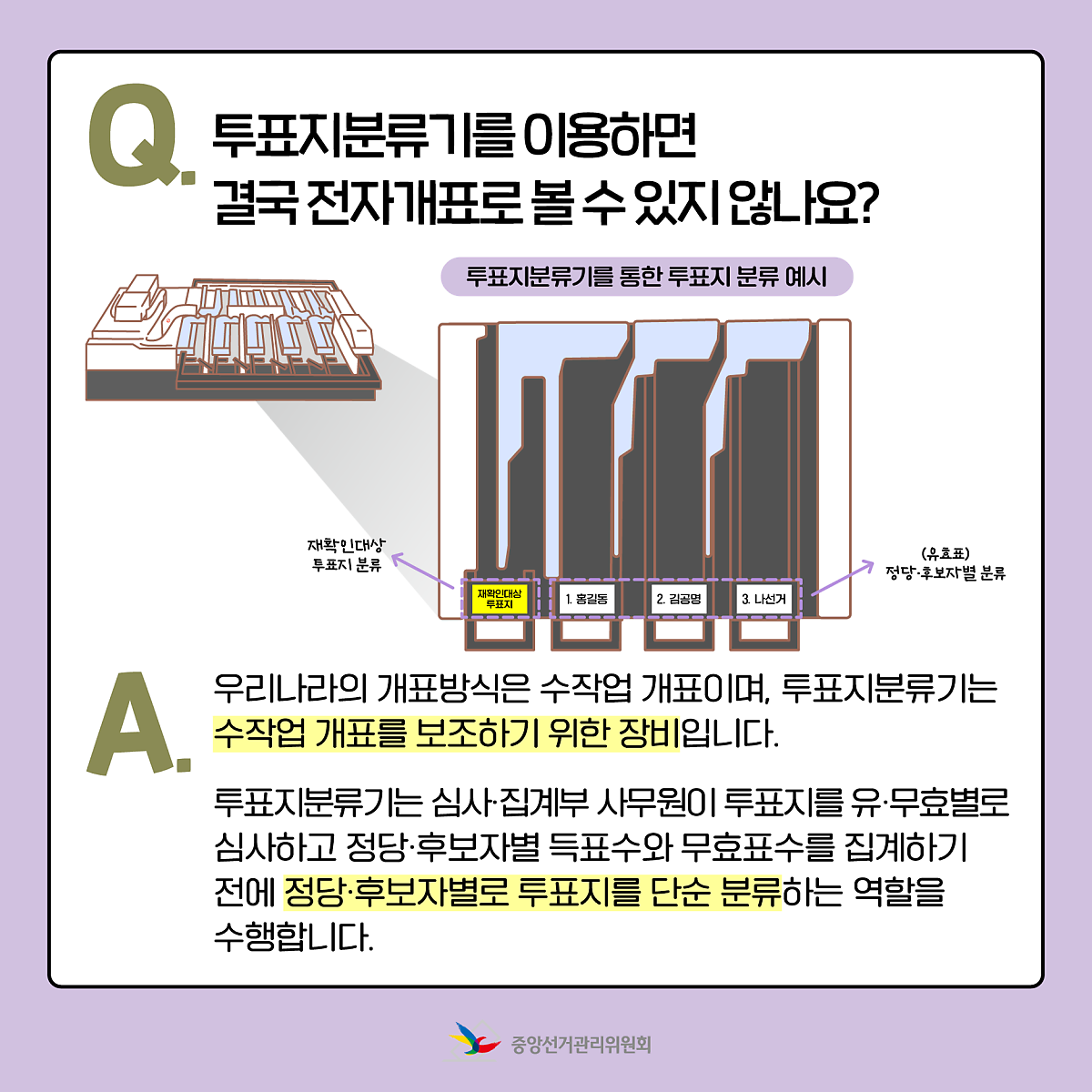 Q. 투표지분류기를 이용하면 결국 전자개표로 볼 수 있지 않나요?