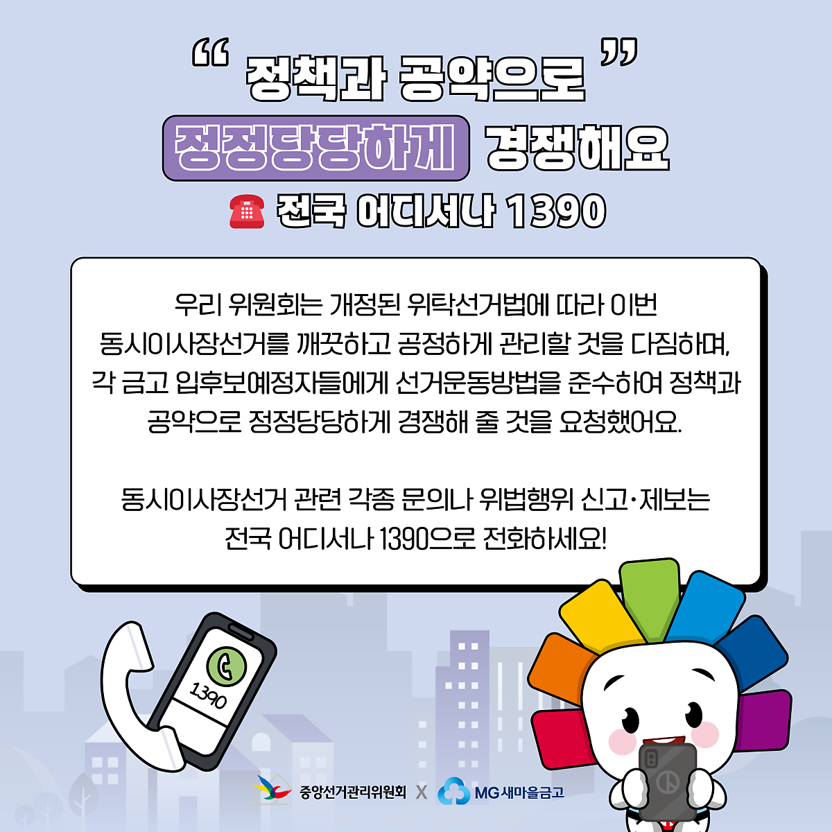 동시이사장선거 관련 각종 문의나 위법행위 신고제보는 전국 어디서나 1390으로 전화해 주세요~!