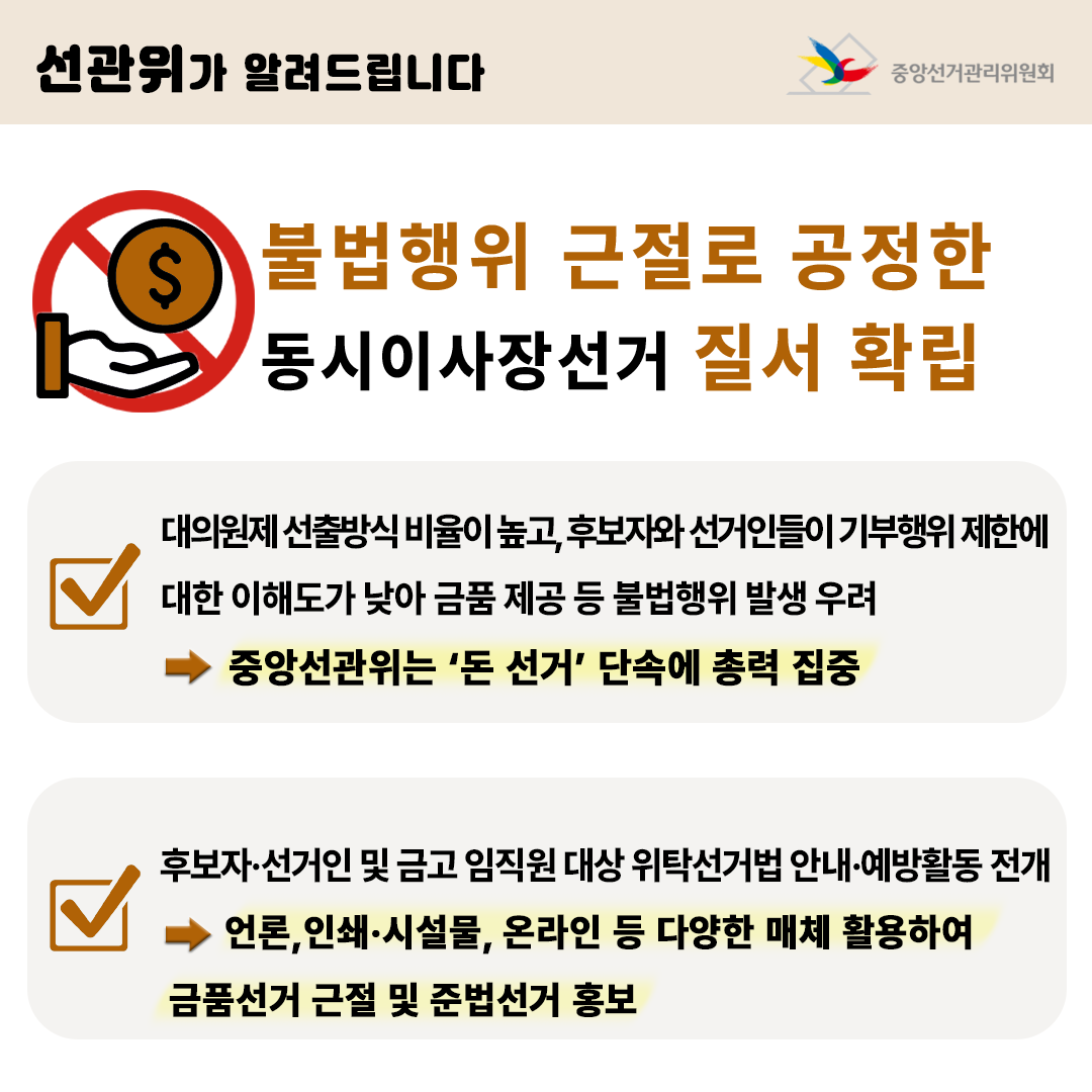 → 중앙선관위는 '돈 선거' 단속에 총력 집중