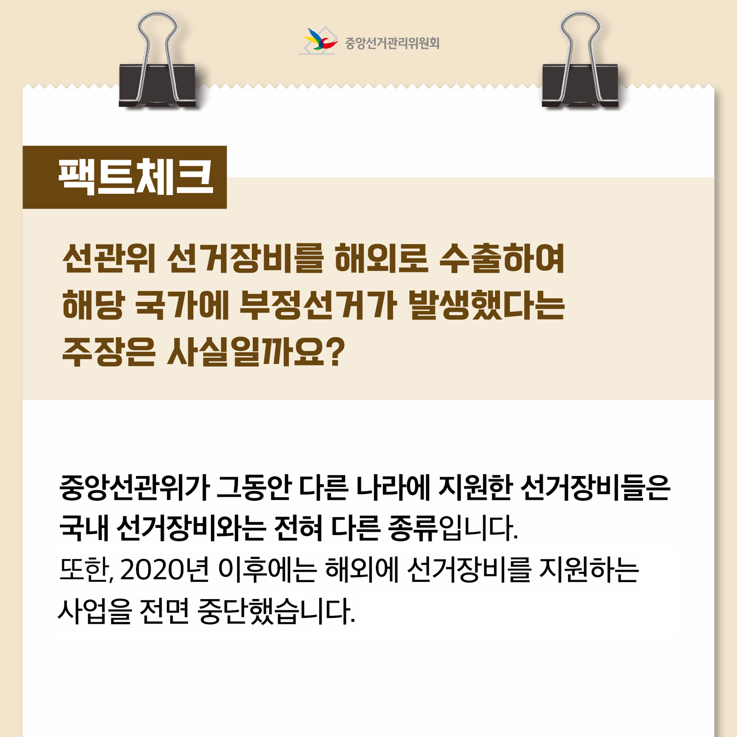 선관위 선거장비를 해외로 수출하여 해당 국가에 부정선거가 발생했다는 주장은 사실일까요?