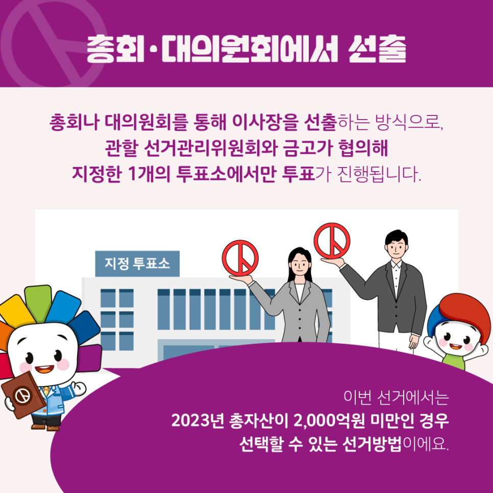 이번 선거에서는 2023년 총 자산이 2,000억원 미만인 경우 선택할 수 있는 선거방법이에요!