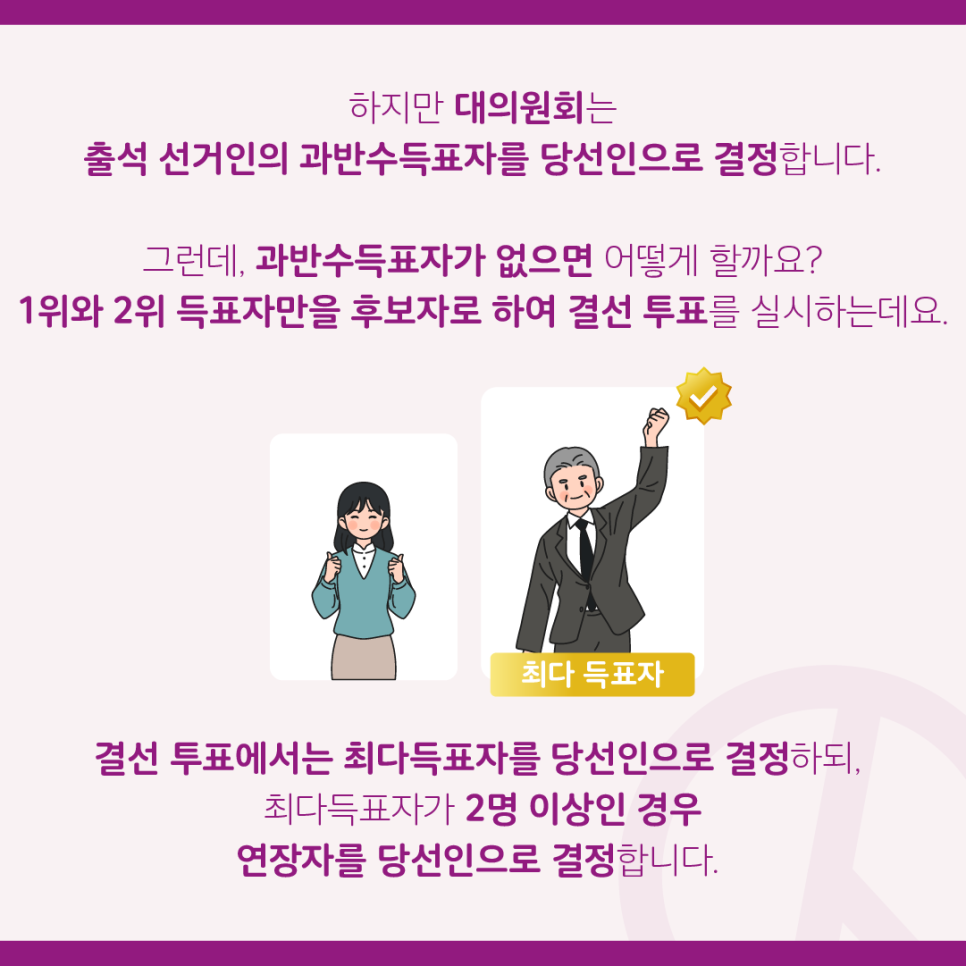 하지만 대의원회는 출석 선거인의 과반수득표자를 당선인으로 결정합니다!