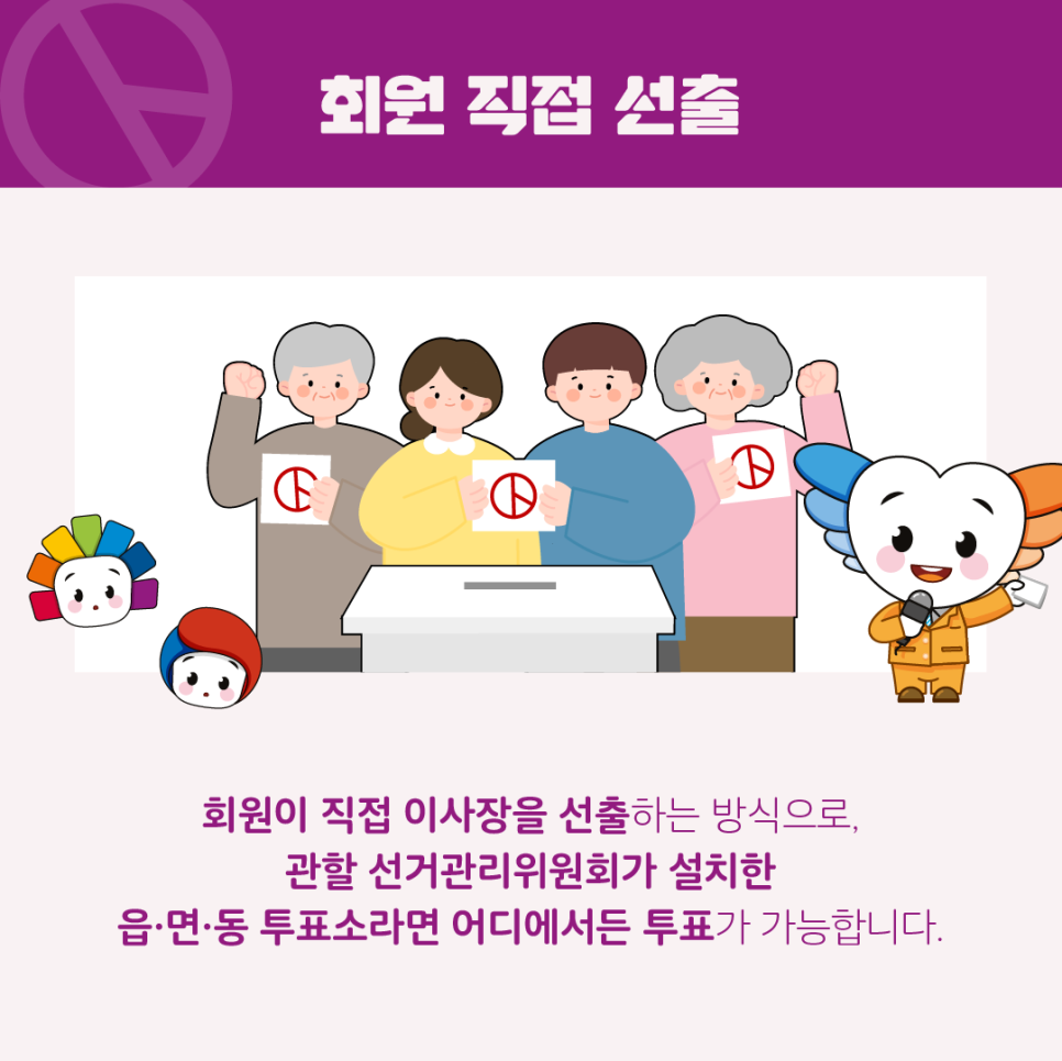 회원이 직접 이사장을 선출하는 방식으로, 관할 선거관리위원회가 설치한 읍·면·동 투표소라면