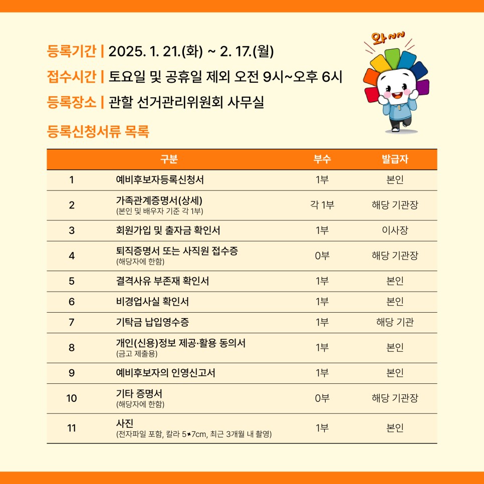 ◦ 등록장소: 관할 선거관리위원회 사무실