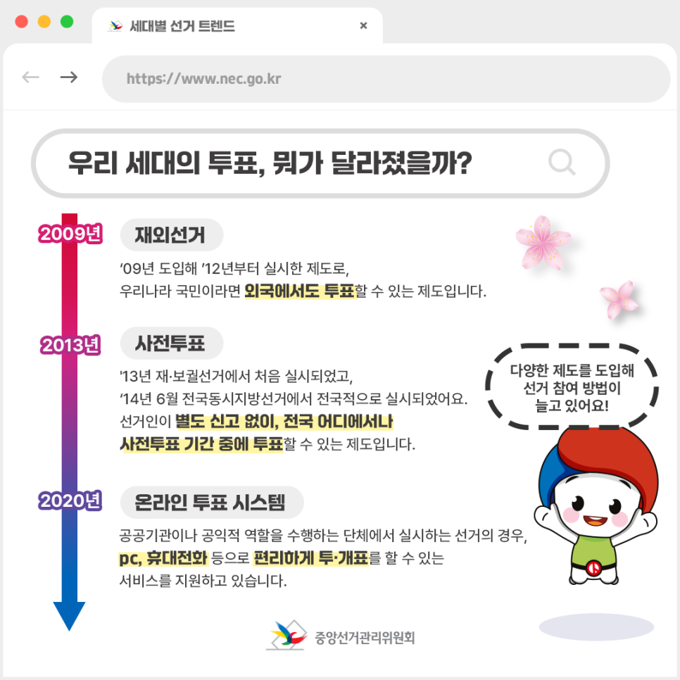 다양한 제도를 도입해 선거 참여 방법이 늘고 있어요!