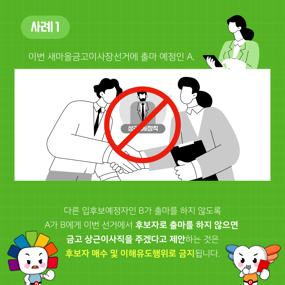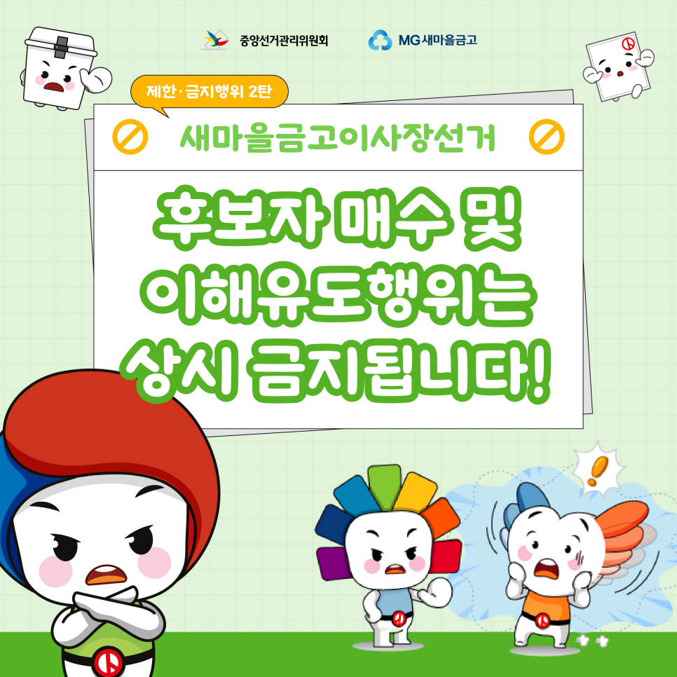 새마을금고이사장선거, 후보자 매수 및 이해유도행위는 상시 금지됩니다!