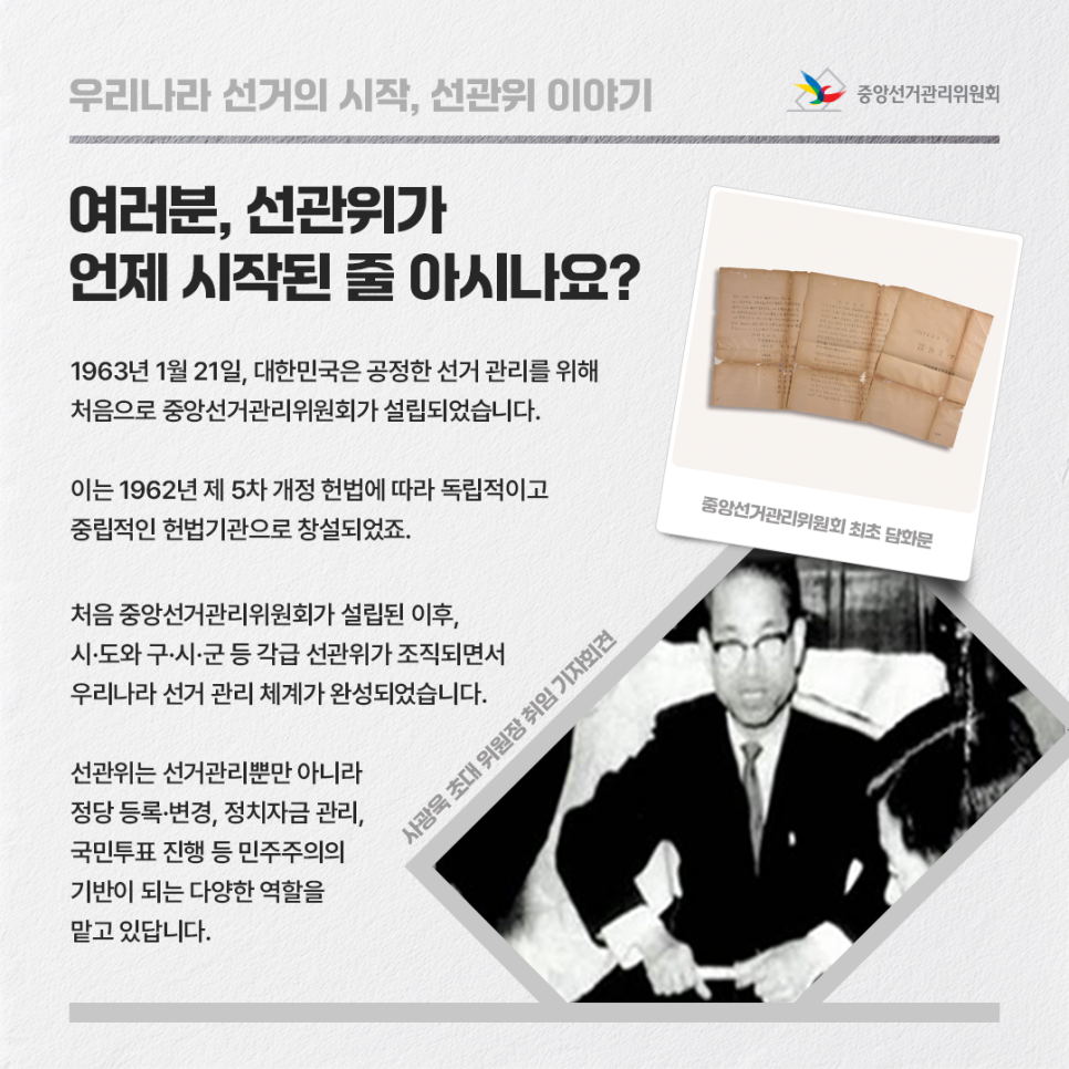 여러분, 선관위가 언제 시작된 줄 아시나요?