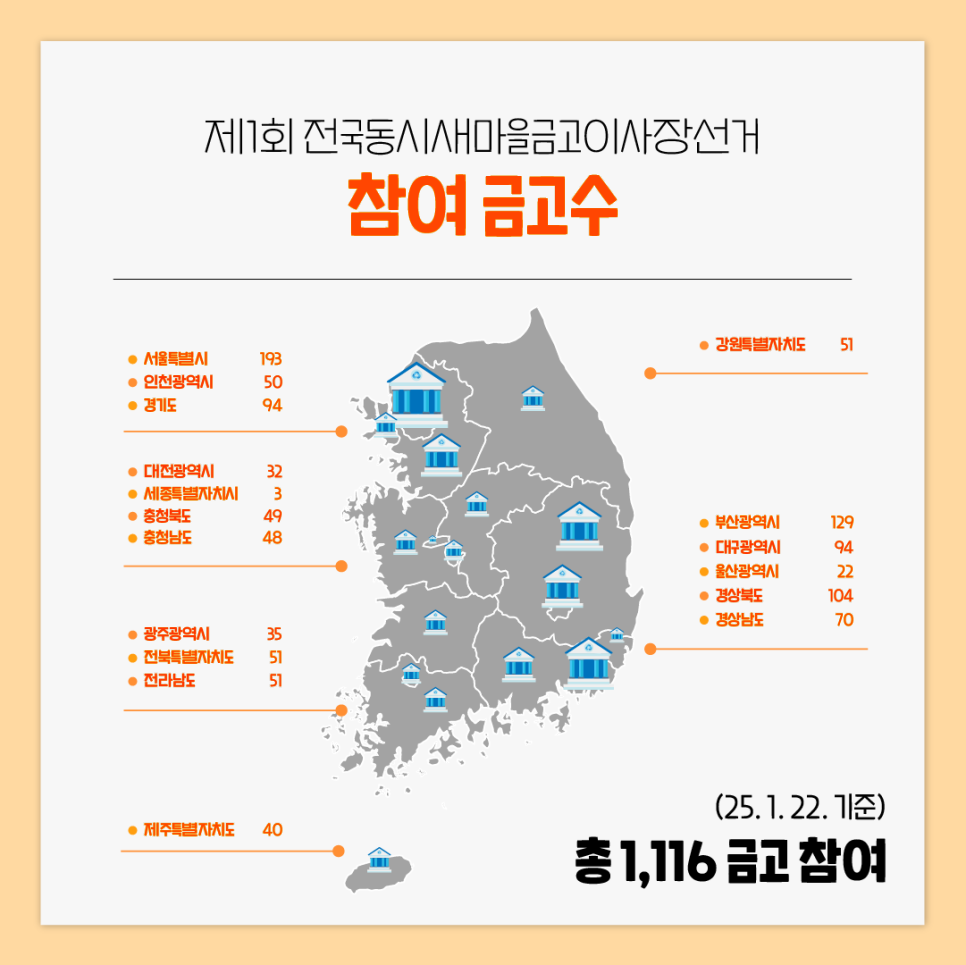 참여 금고수 총 1,116 금고 참여(25.1.22. 기준)