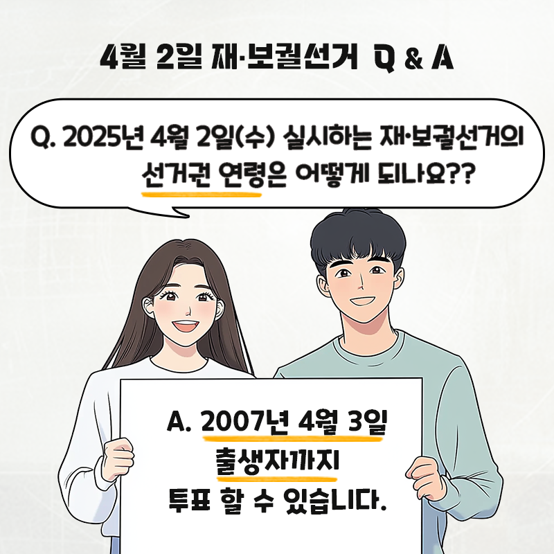 Q. 2025년 4월 2일(수) 실시하는 재·보궐선거의 선거권 연령은 어떻게 되나요?